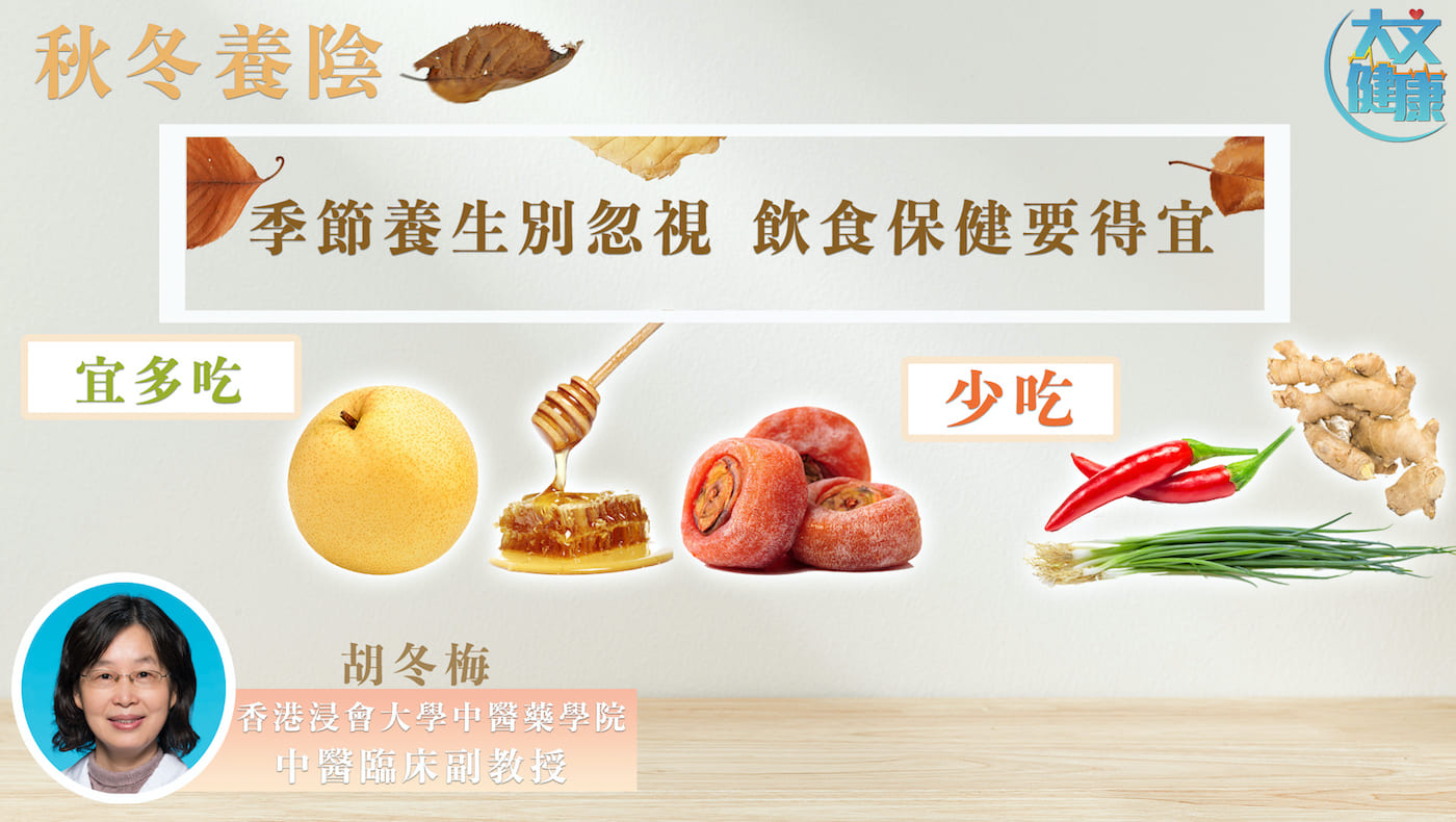 中醫根據四季的變化講究「春夏養陽」及「秋冬養陰」的保健養生之道。所謂的「養陰」,就是從秋天第一個節氣「立秋」開始調理身體。如何養陰?在這個季節,飲食上應該添加一些滋陰潤燥的藥物和食物,以預防「秋燥」所帶來的傷害。除了中醫所講的「慎起居,節飲食,調情志」,還應適當鍛煉身體,增加抵抗力。秋天,在「五行」之中屬於「金」,根據「五行」生剋乘侮的關係,我們應該選擇具潤肺生津功能的食物或藥物為主,譬如:沙參、麥冬、生地黃、石斛、玉竹及百合等藥材,而銀耳、雪梨、蜂蜜、柿餅、糯米、黑芝麻、鴨肉、海參等食材同樣適合在此時食用。