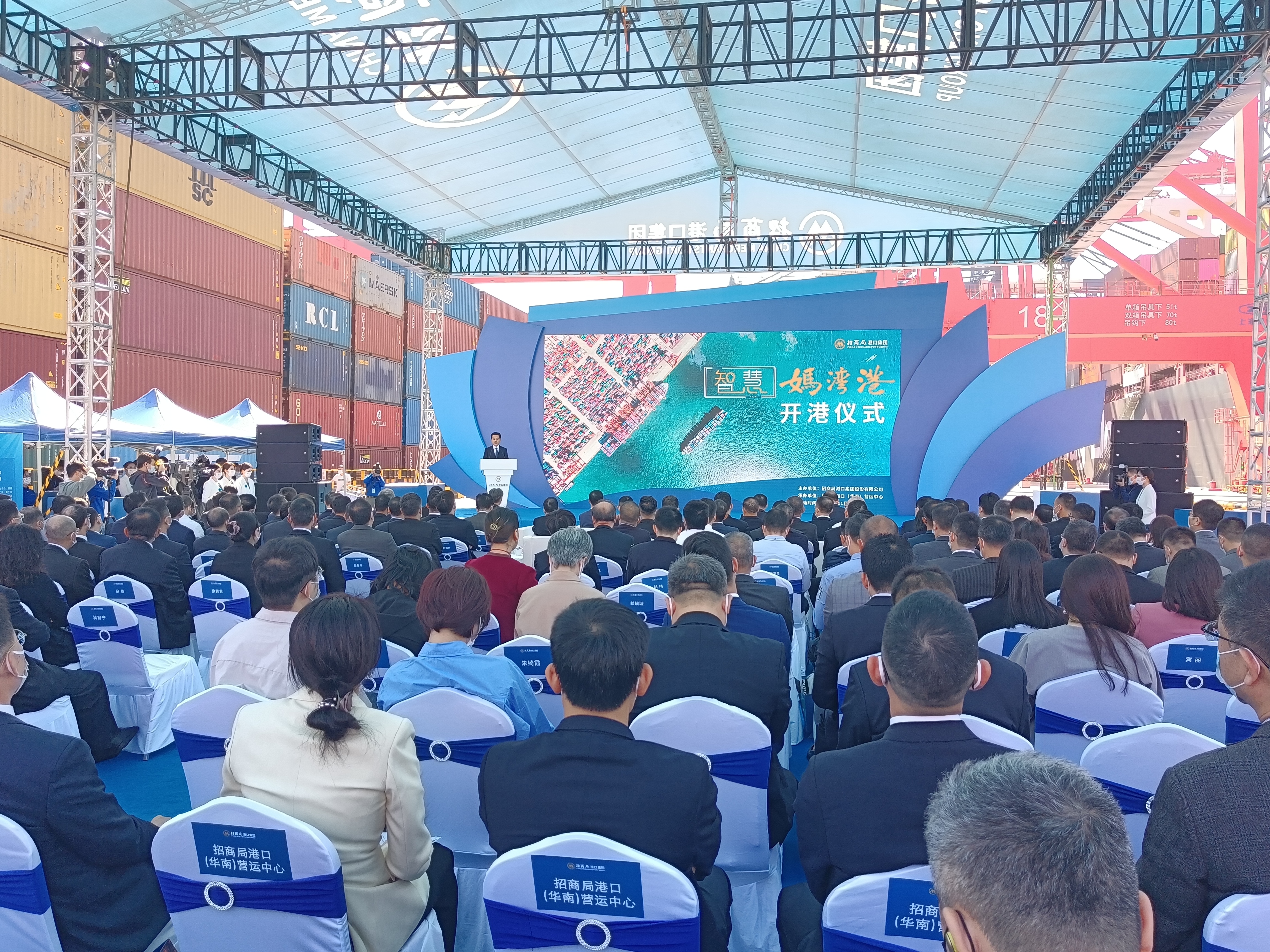 招商局集團響應深圳市委、市政府提出的將深圳市建設成為「全球海洋中心城市」的目標,經過3年多的整體升級建設,媽灣港原4個散雜貨泊位升級改造成為了2個20萬噸級的集裝箱專用泊位。媽灣智慧港3#、4#泊位是當前全球最大的20萬噸級集裝箱泊位,也是首個由傳統散雜貨碼頭升級改造並匯集自主知識產權和當前最先進成熟的智能技術的智慧港。改造後的港區佔地面積98.36萬平方米,泊位岸線總長1930米,擁有5個泊位,設計吞吐能力超300萬TEU,可供靠泊世界最大型集裝箱船舶,是經濟高效的新一代的智能化集裝箱港口。