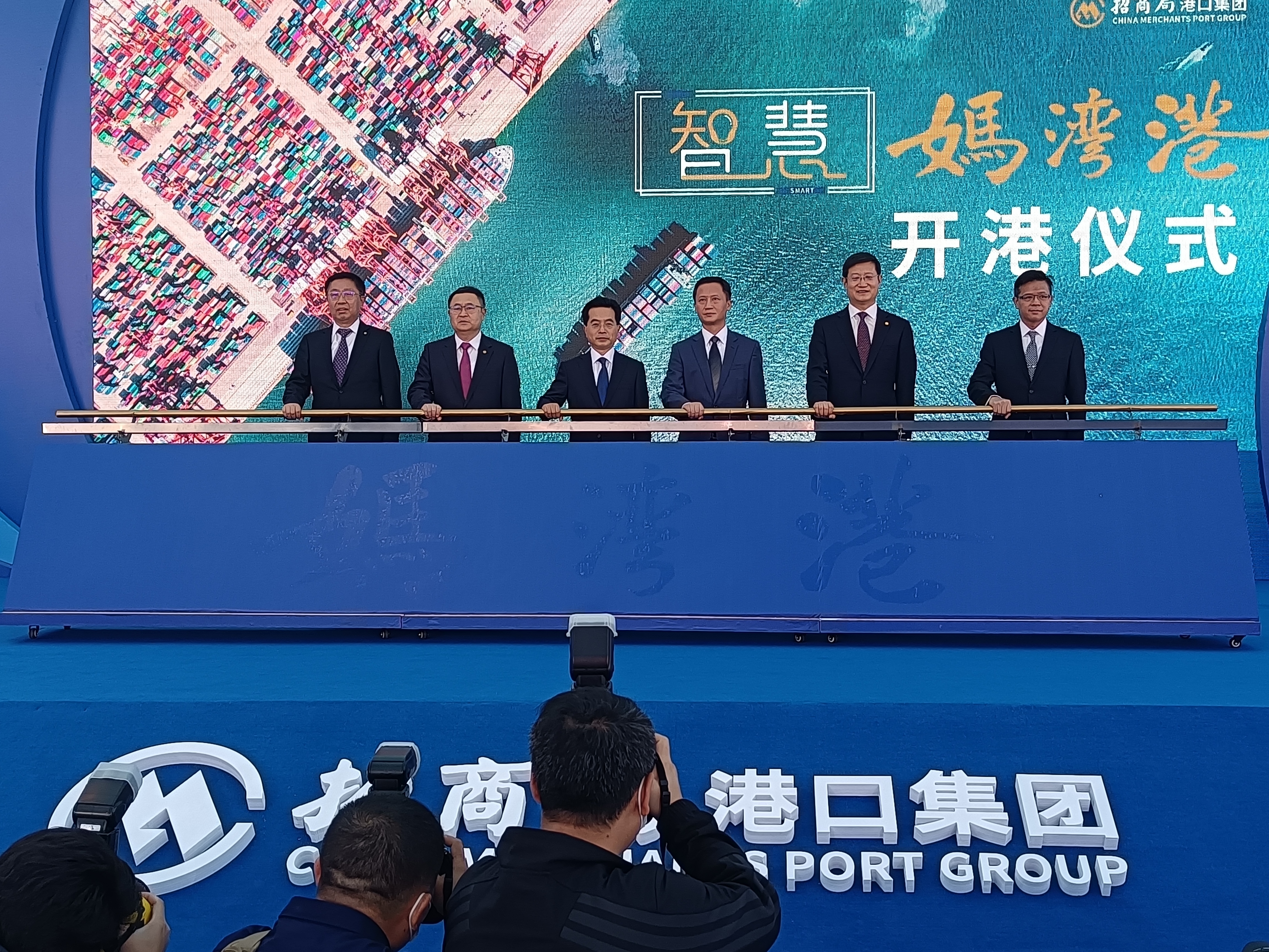 (大公文匯網記者 李昌鴻)粵港澳大灣區首個應用5G、人工智能和大數據等打造的智慧港招商港口媽灣智慧港14日舉行開港儀式。深圳市人民政府副市長餘鋼,招商局集團董事長繆建民、總經理胡建華,達飛輪船(中國)有限公司(華南區/香港)總經理黎錫榮出席了開港儀式。該儀式吸引了大量合作夥伴和媒體。港口現場全部智能化操作,每1000標箱的配載時間比人工配載效率提升10倍以上。招商局集團繆建民表示,未來智慧港方案將向「一帶一路」20多國家數十個港口推廣。