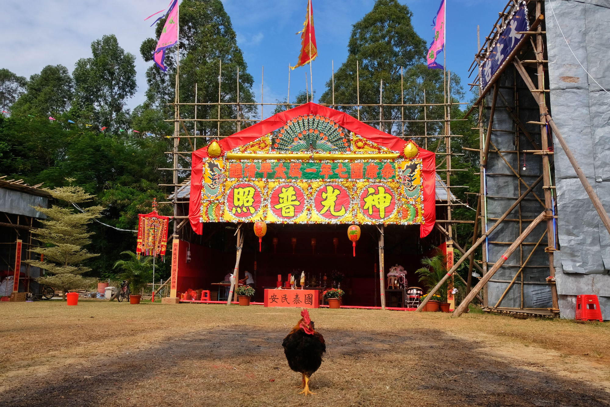 泰康圍,坐東向西,門朝后海灣,背枕觀音山,是錦田鄧氏開建的四圍五村之一,至今保持着七年一屆的酬神化衣。