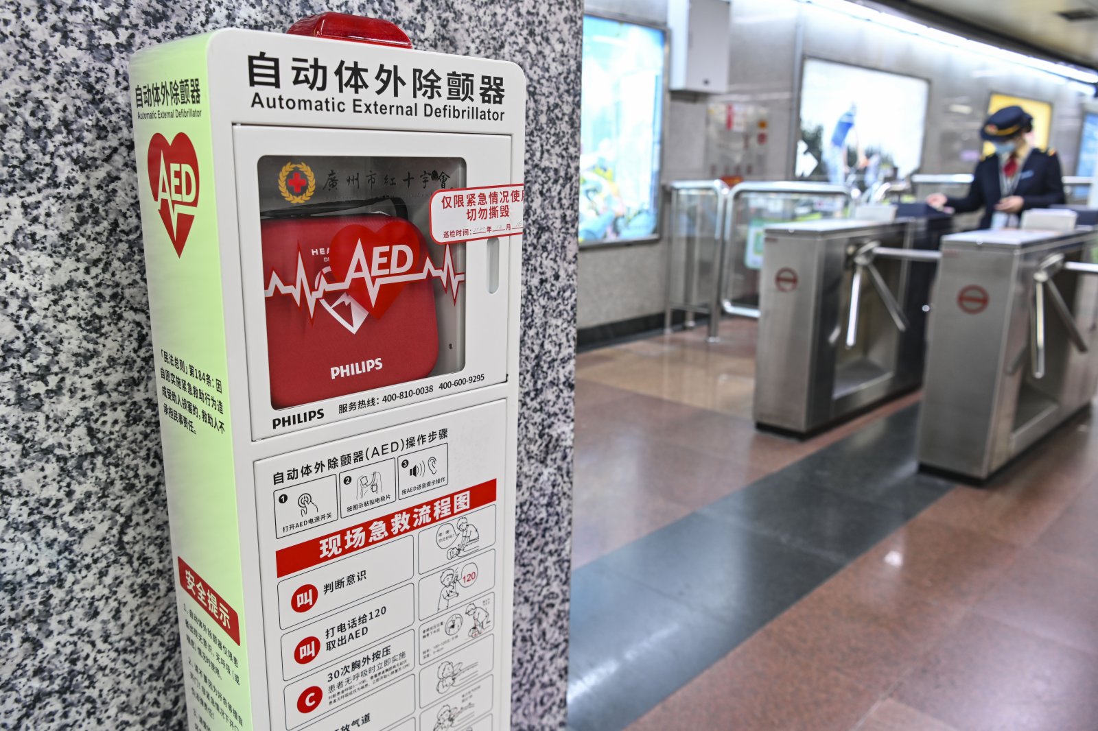 據中新網報道,由廣東省慈善總會、廣東省藍態幸福文化公益基金會、廣東省紅十字會、廣州市紅十字會、廣州市藍態公益發展中心向廣州地鐵捐贈的194台AED(自動體外除顫器)設備,於當日正式投入使用。加上此前已配備的119台AED設備,廣州地鐵已實現AED設備全面覆蓋地鐵線網各站點。