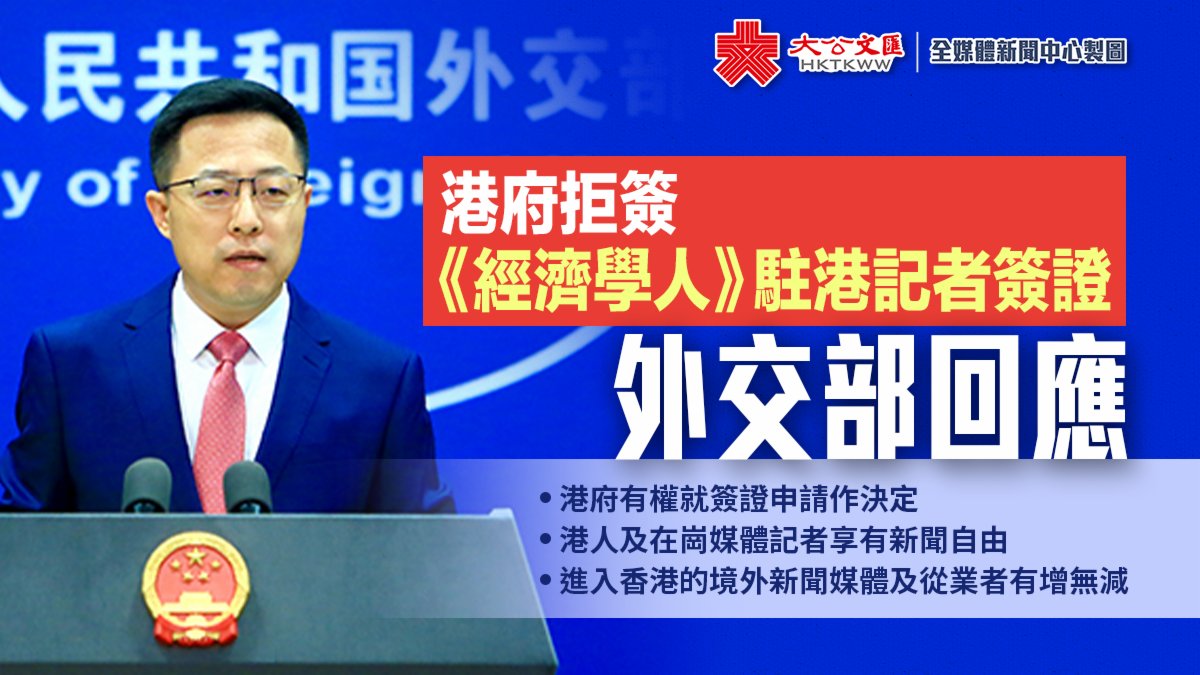 大公文匯全媒體報道,在今日(15日)的外交部例行記者會上,有記者就香港特區政府拒簽《經濟學人》駐港記者工作簽證一事提問。外交部發言人趙立堅表示,香港特區政府有關部門已經就此作出原則回應。他強調,簽證事務是一國主權,香港特區政府有權依據「一國兩制」和香港特區基本法就簽證申請作出決定。