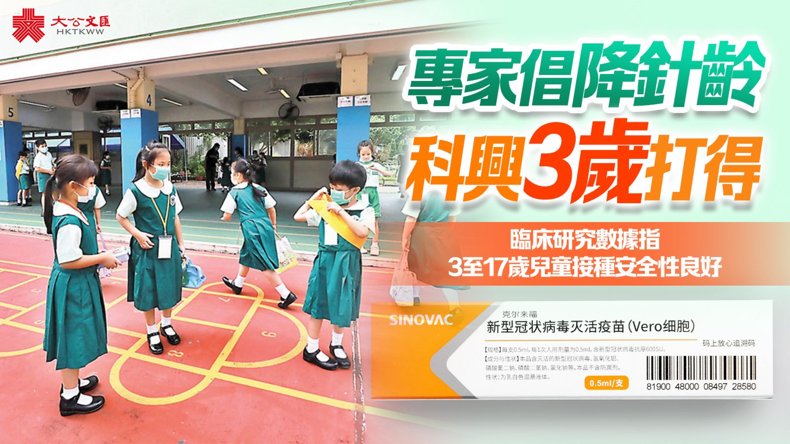 (香港文匯報記者 文森)香港特區新冠疫苗顧問專家委員會昨日開會後,建議特區政府將科興疫苗的最低可接種年齡由18歲降低至3歲。委員會於會議上審視了科興提交的臨床研究數據及在內地收集的現實世界安全數據等相關資料,認同科興疫苗在3歲至17歲不同人種的兒童中均具有良好的安全性,且會較成年人產生較高的免疫原性反應。另外,委員會亦已得悉5歲至11歲兒童接種復必泰疫苗的相關臨床數據,以及於海外地區獲緊急使用授權的情況,但建議政府就降低復必泰接種年齡的事宜及要求向復星醫藥索取相關資料。