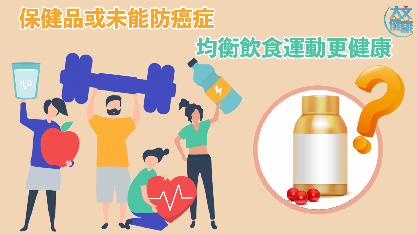 華人通常聞補則喜,有吃營養補給品來保健的習慣;外國人則吃維他命或保健品之類。但對於大多數人來說,合理的飲食比膳食補充劑更可能預防癌症。有隨機對照試驗證據表明,大劑量β- 胡蘿蔔素補充劑可能會增加某些人患肺癌的風險。除鈣能減少結直腸癌風險外,沒有強有力的證據表明膳食補充劑可以降低癌症風險。市面上流行的靈芝、冬蟲夏草、褐藻糖膠等貴價保健食品,雖然對人體有一定作用,但目前並無足夠證據證明可以預防癌症。
