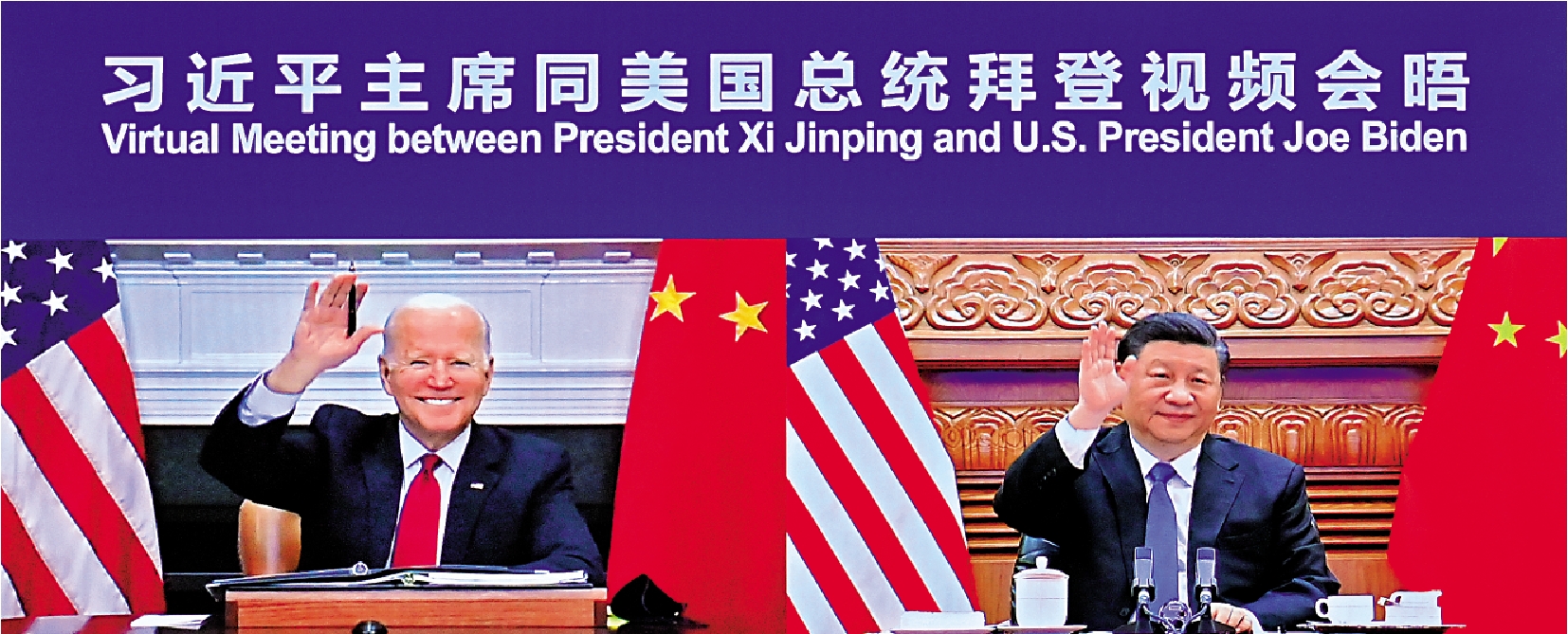 拜登表示,美中關係是世界上最重要的雙邊關係。雙方應通過開誠布公和坦率對話,增進對彼此意圖的了解,確保兩國競爭公平、健康,而不會演變成為衝突。我贊同習近平主席所講,歷史是公正的,美中關係只能搞好,不能搞砸。中國在5000多年前就已經是一個大國。我願明確重申,美方不尋求改變中國的體制,不尋求通過強化同盟關係反對中國,無意同中國發生衝突。美方願同中方相互尊重、和平共處,加強溝通,減少誤解,以建設性方式妥處分歧,在美中兩國利益一致的領域加強合作,共同應對新冠肺炎、氣候變化等全球性挑戰,讓兩國人民都能過上更美好的生活。