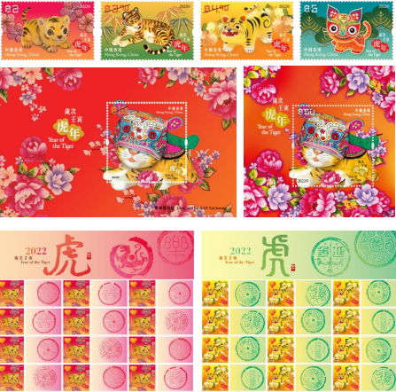 香港郵政亦一如以往於農曆新年前推出以來年生肖為主題的特別郵票,共迎新歲。「歲次壬寅(虎年)」生肖郵票以虎為造型的工藝品作設計,屆時亦會同步推出「十二生肖金銀郵票小型張——健牛福虎」,展示配對成雙的健牛與福虎,為佳節增添喜慶。