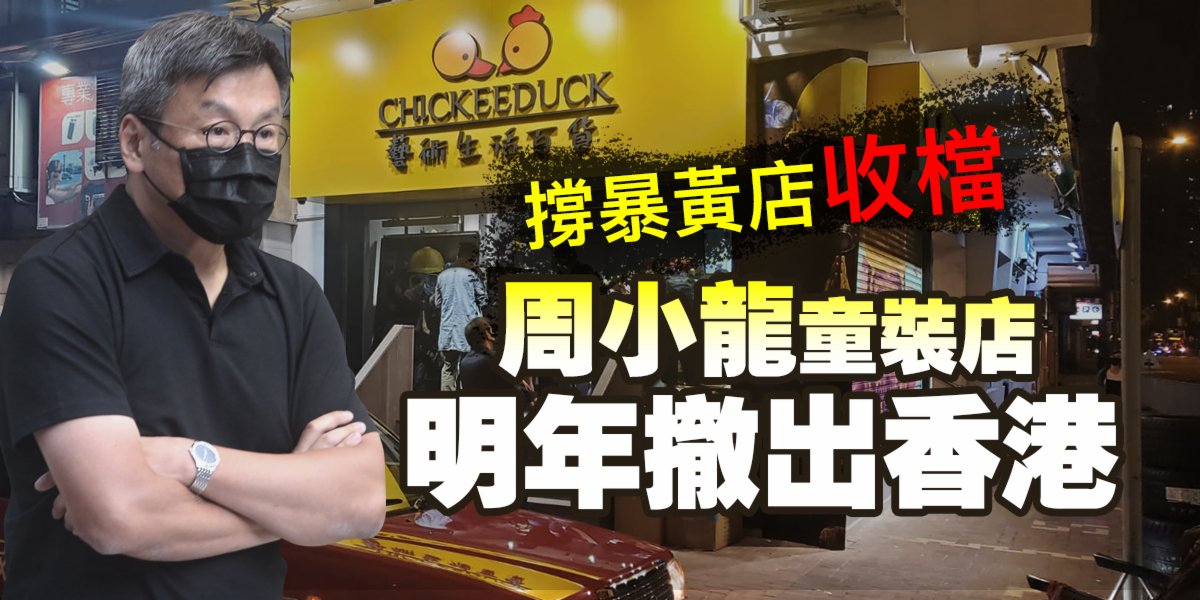 大公文匯全媒體報道,連鎖童裝店「Chickeeduck」自前年修例風波以來,不停以種種偏激言行來增加曝光率,發「黑暴財」。老闆周小龍除於各分店高調擺放大量煽暴以及「港獨」物品外,更在網上公然發表各種撐暴及反政府言論博眼球,引起社會各界強烈批評。不過,多行不義終自斃,今日(18日)有傳媒報道指,周小龍宣布將於明年下半年撤出香港市場,關閉「Chickeeduck」所有實體店,惟網店則會繼續經營。