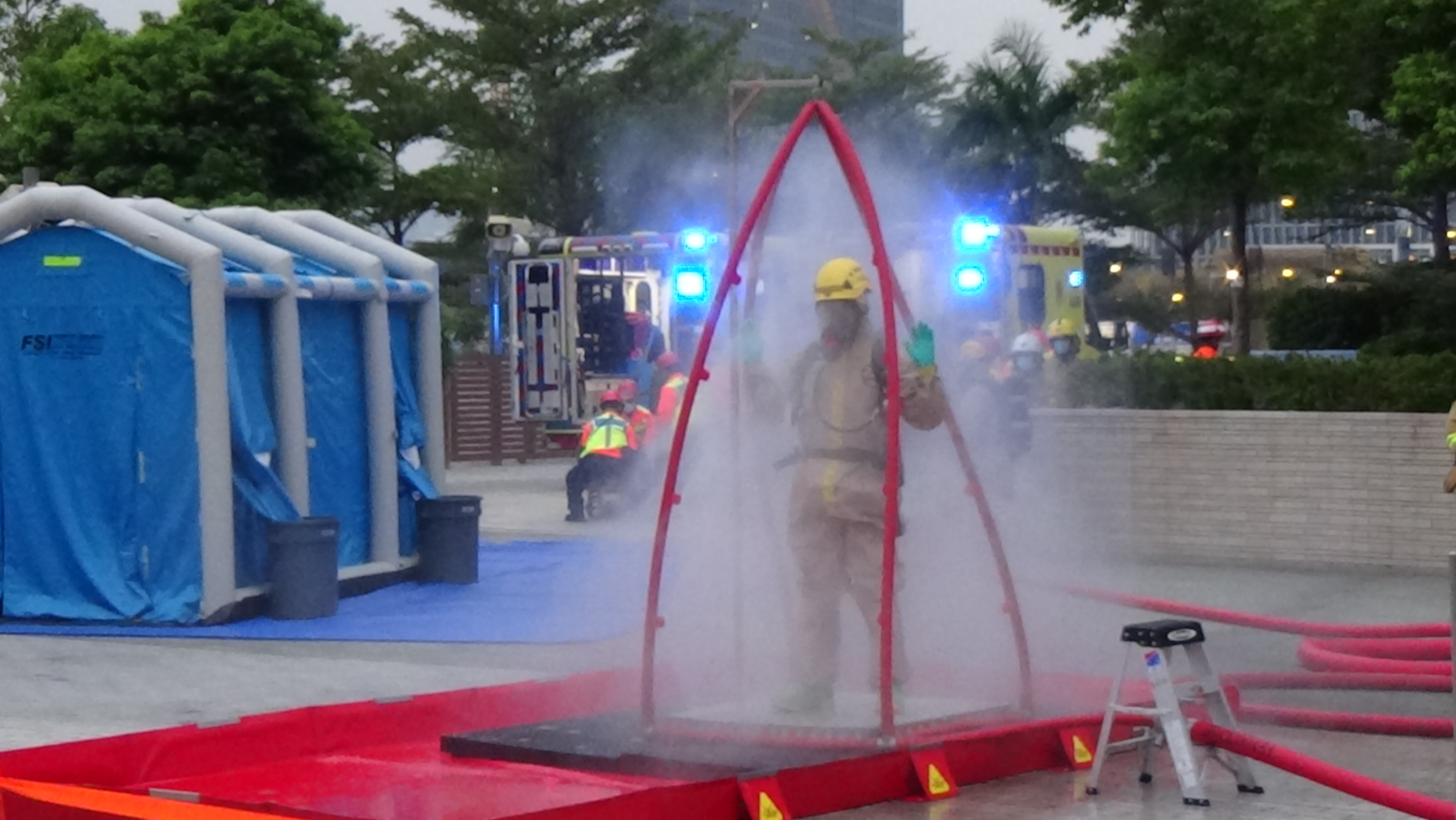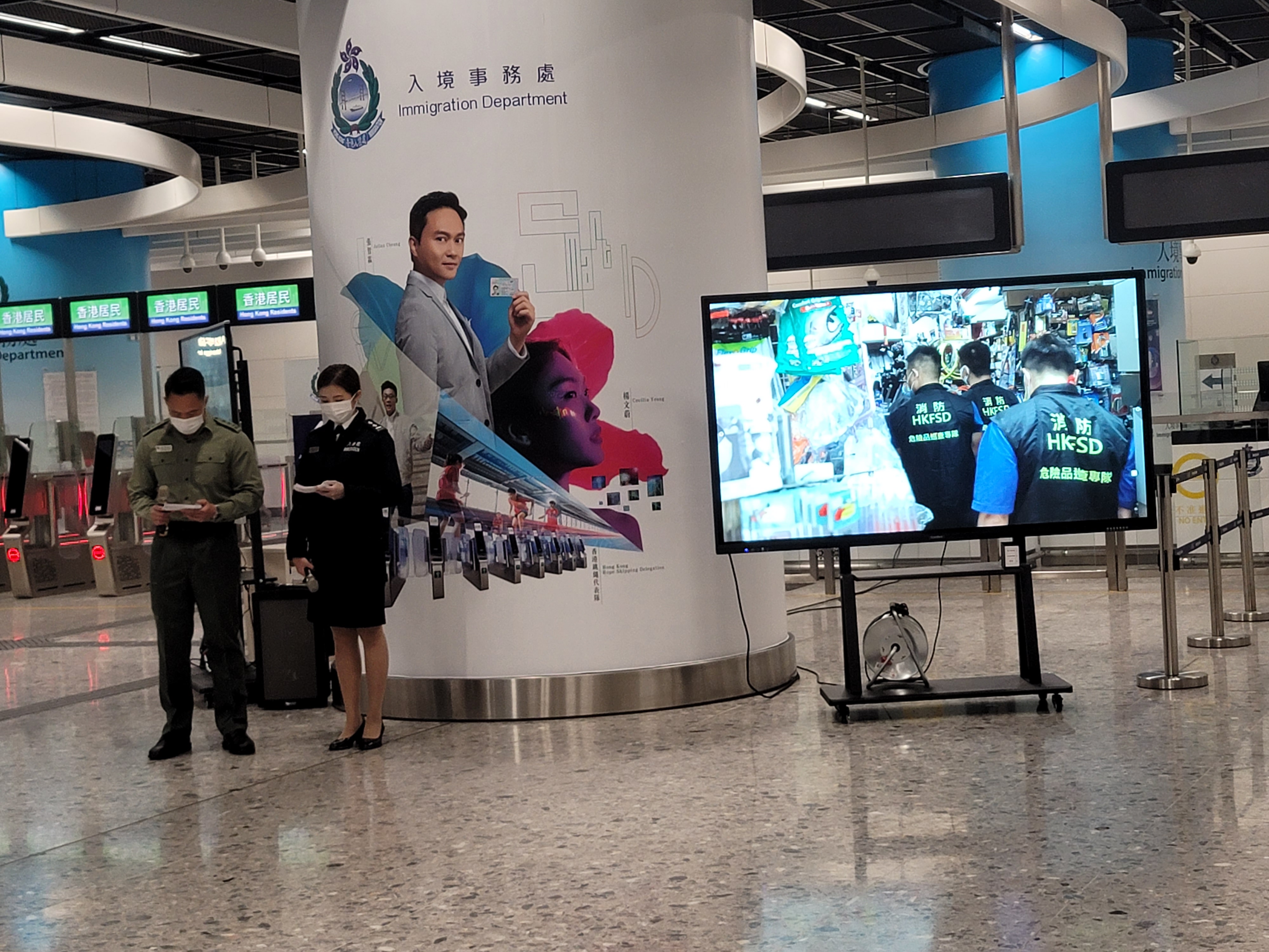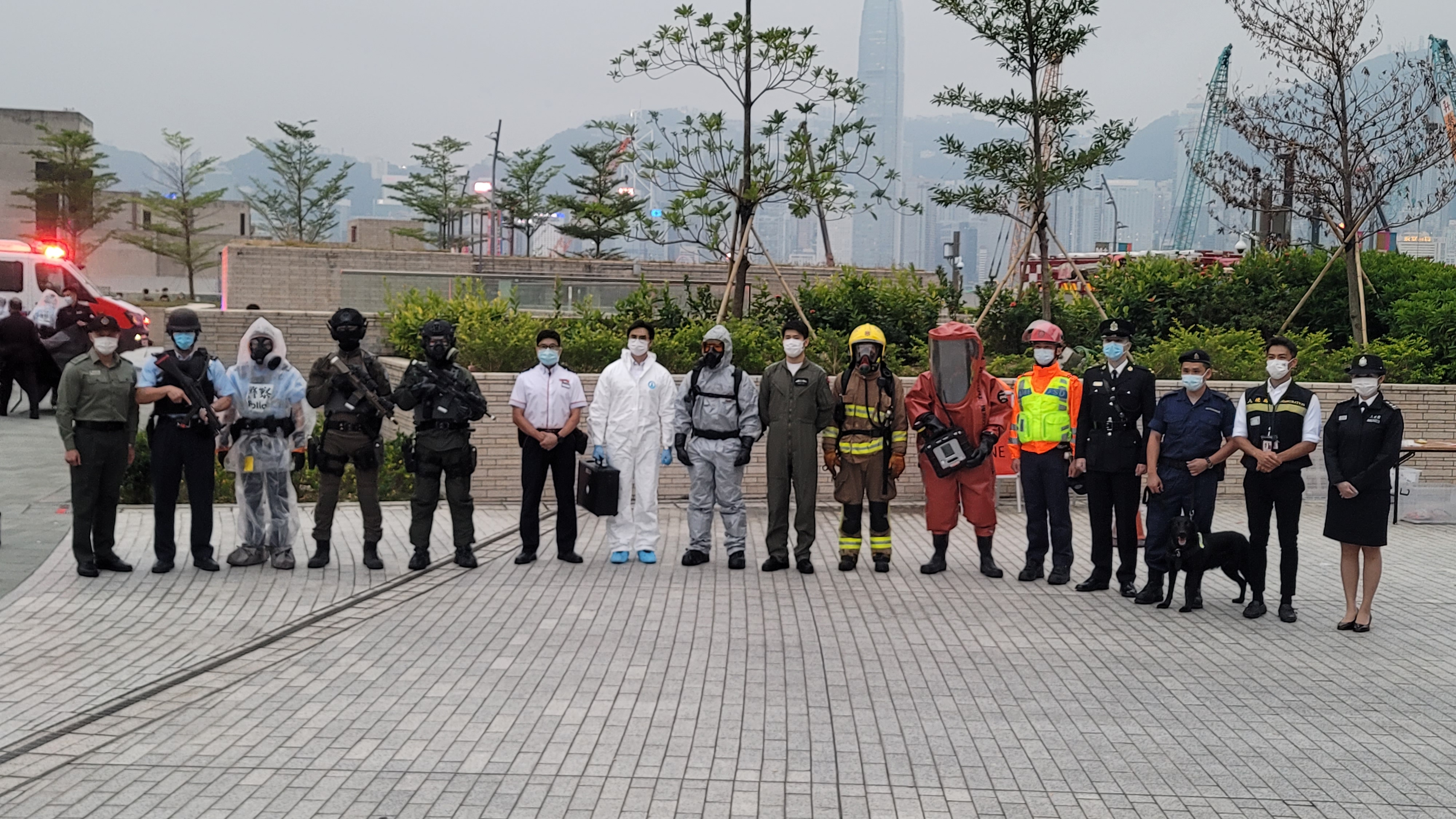 大公文匯全媒體報道,有海關、懲教署、消防處、飛行服務隊、警務處及入境處組成的跨部門反恐專責組,今日(19日)下午在西九龍高鐵站展開代號「虎速」的反恐演習。除六大紀律部隊之外,政府化驗所專家及港鐵亦有有份參與,保安局局長鄧炳強、警務處處長蕭澤頤等重要官員亦在場觀摩。