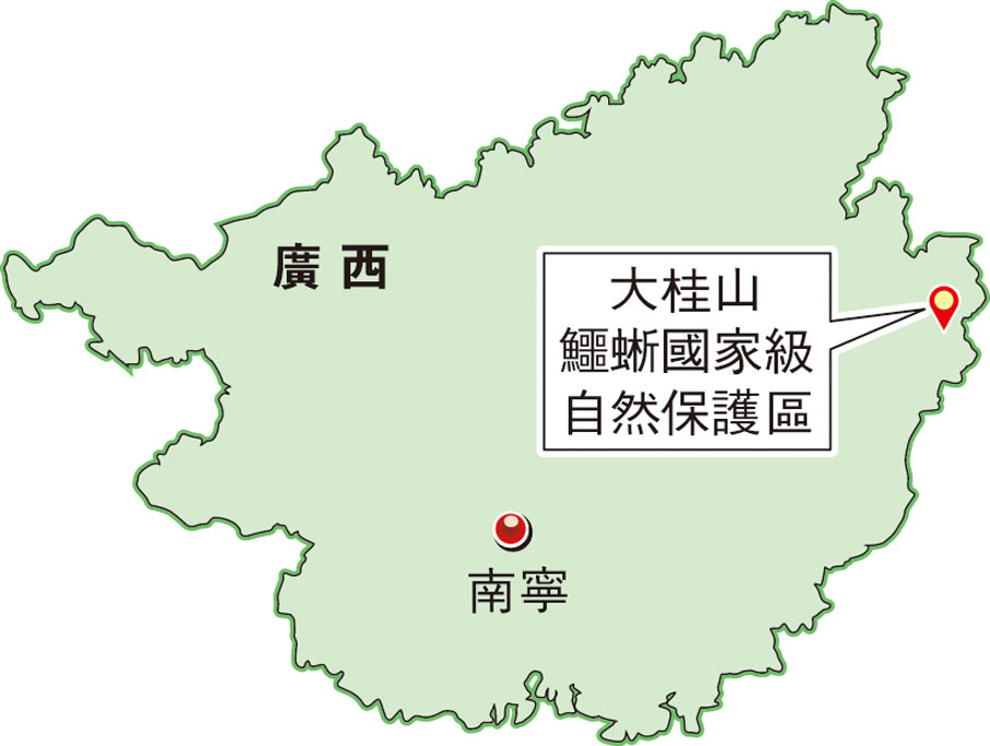 清澈見底的泉水順着層疊的石頭潺潺流下,樹梢橫亘在溪流上,一個側腹紅褐相間的鱷蜥前爪緊緊抱握着枝丫,正一動不動地在休息。鱷蜥由於頭部像蜥蜴,尾部像鱷魚而得名,是第四紀冰川時期孑遺下來的單型科單型屬物種,至今已在地球上生活了2億多年。「雖然經歷過恐龍稱霸的時代,也在爬行動物衰落、哺乳動物興起的更迭中存活,但是由於環境的破壞,鱷蜥棲息地嚴重破碎化,已瀕臨滅絕。」廣西大桂山鱷蜥國家級自然保護區管理中心技術人員羅樹毅從事鱷蜥研究、保育工作已近13年,對他來說鱷蜥就像他的「第二個孩子」。平日裏不善言辭的羅樹毅一談到鱷蜥,臉上總綻放着笑容。