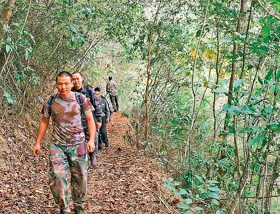 挎上背包,騎上摩托車,張維一行4人開始了一天的巡山護林工作。從2015年開始,張維在大桂山保護區北婁片區工作了6年。「以前剛剛來這裏工作的時候,沒有通路,無法騎摩托車,日常巡護通常要靠雙腿走。最遠的一次我記得走了30公里,從早上7點出發,晚上8點才回到駐地。」從父親手中接棒成為一名護林員,張維表示,對這片山林的喜愛是讓他堅守的原動力。