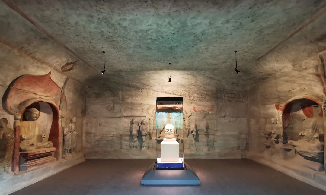 「復興路上·國寶歸來」特展是太原市文物保護研究院(天龍山石窟博物館)的常設展覽,以第8窟北壁主尊佛首為核心展品,分為「亂世之殤」和「盛世之歸」兩個單元,綜合運用珍貴文物、歷史圖片、數字復原、3D打印石窟等多種形式,全方位講述天龍山石窟文物流失與回歸歷程,展現流失文物調查研究、考古發掘和修復保護最新成果。