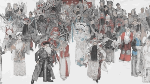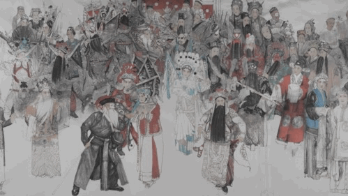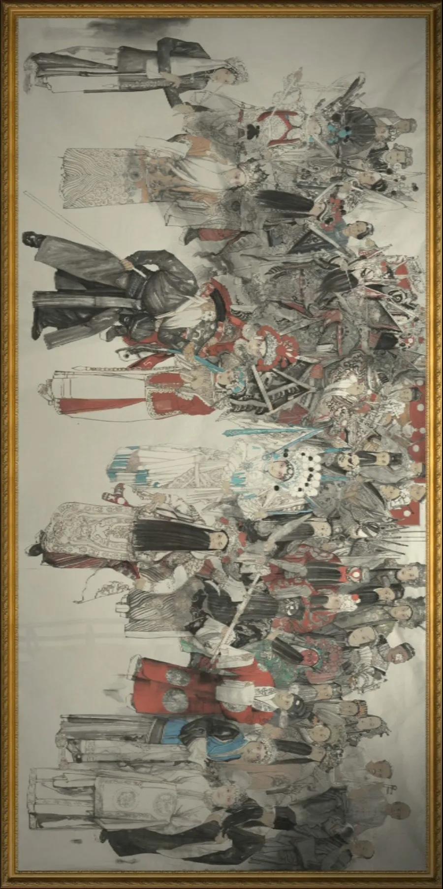 這幅作品被後人評價為「墨彩如生,吹氣欲活」。由此王穎生獲得了創作靈感,以寫意的方式來表達梨園代代傳的主題,以虛實結合的手法,將大量戲曲人物進行集納式展現,最終完成了《梨園代代傳》的創作。