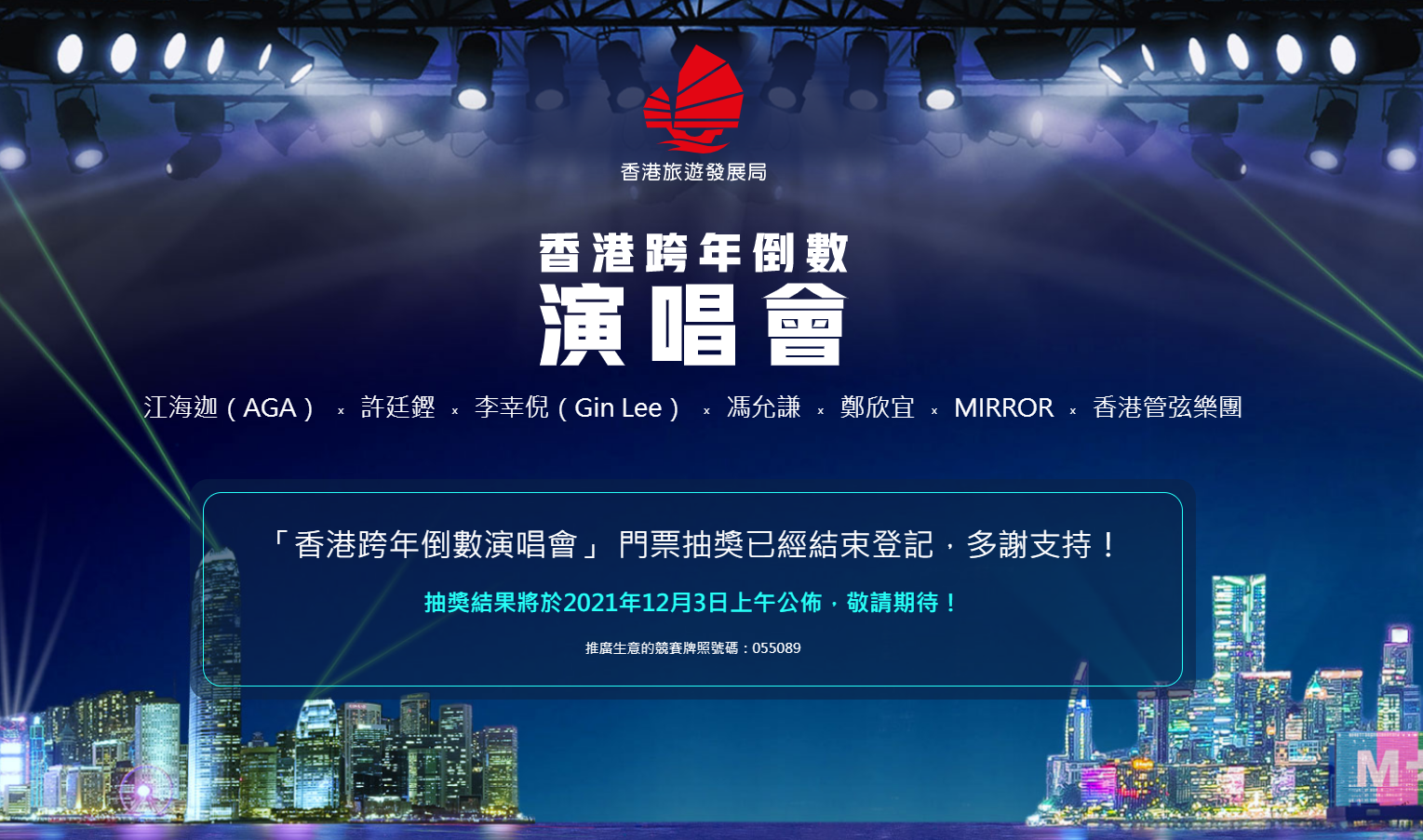 大公文匯全媒體報道,旅發局舉辦的「跨年倒數演唱會」門票抽獎活動登記期結束,有超過20萬人參與。旅發局將透過電腦系統隨機抽出1500名登記人,即合共3000名參加者,下月3日公布抽獎結果。