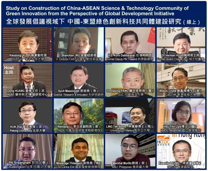 大公文匯網報道,今日(26日)上午「全球發展倡議視域下中國-東盟綠色創新科技共同體建設」研討會在華中科技大學舉行。來自國內外多所院校和政府部門的20餘名專家學者,通過線上線下結合的形式,與我院教師、研究生等30餘人圍繞「中國-東盟綠色創新科技共同體建設」議題進行了充分深入的研討。