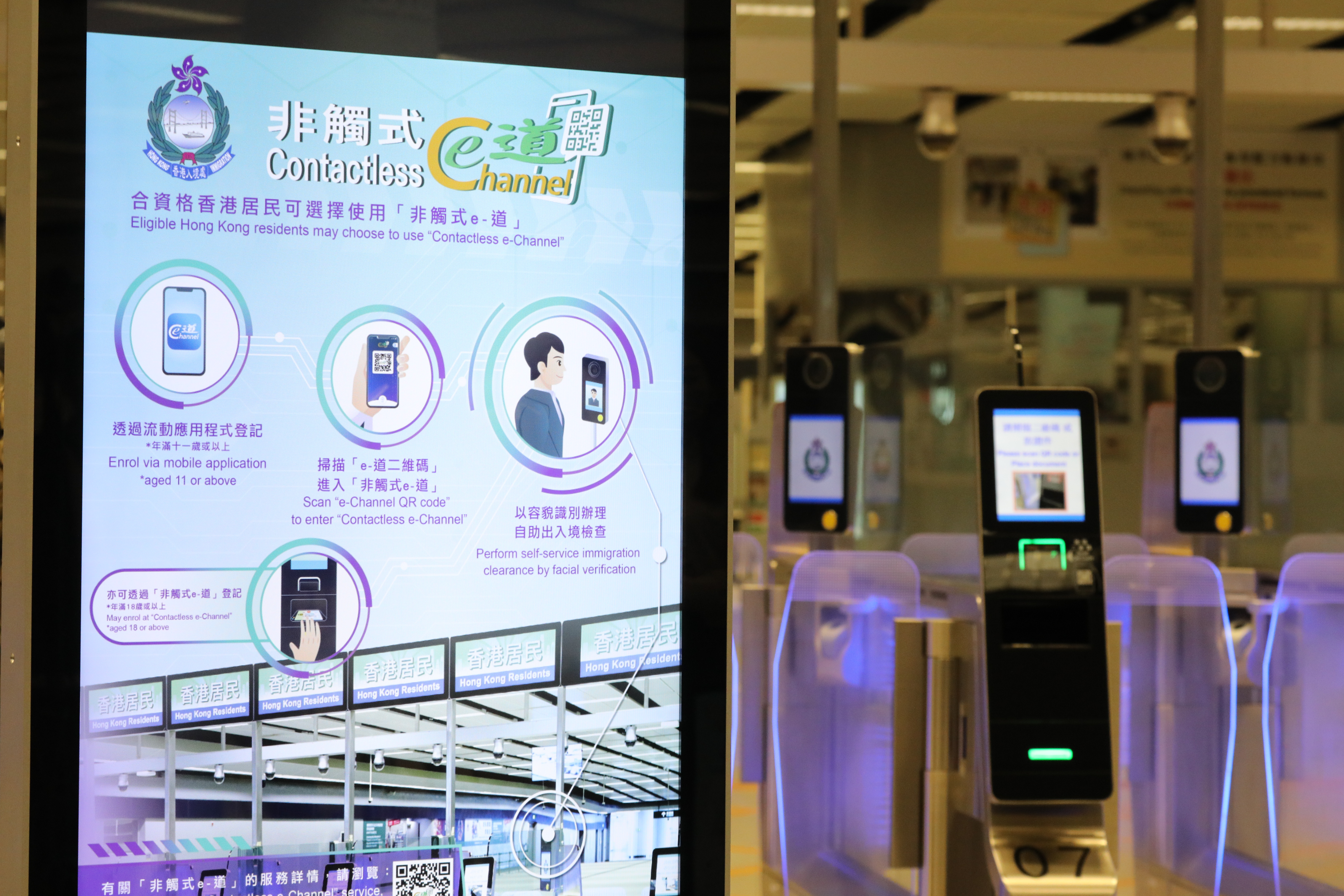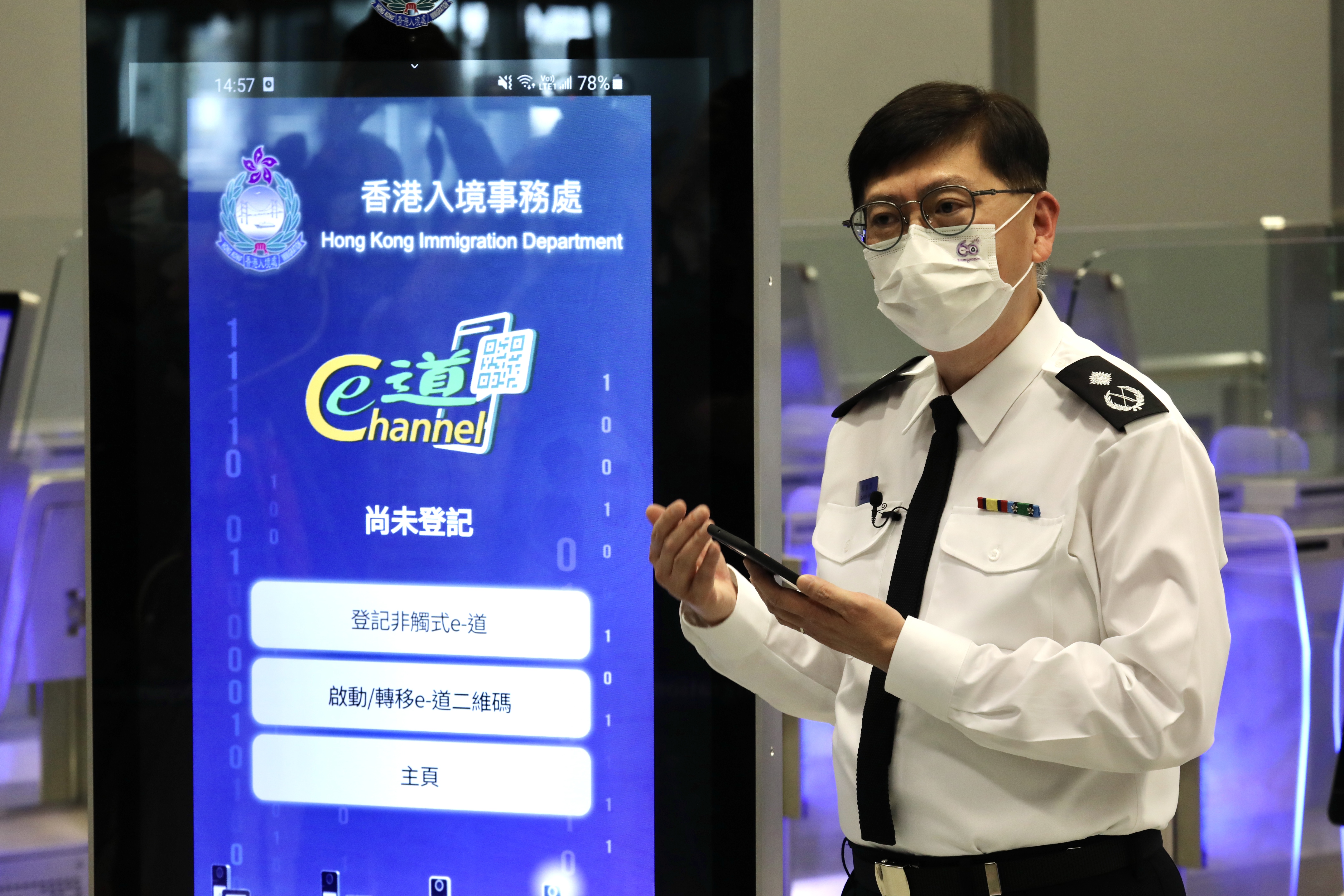 入境處助理處長(資訊系統)何家榮表示,「非觸式e道」未來會逐步推展至其他管制站,將為市民帶來更快捷、方便及衞生的出入境檢查服務。