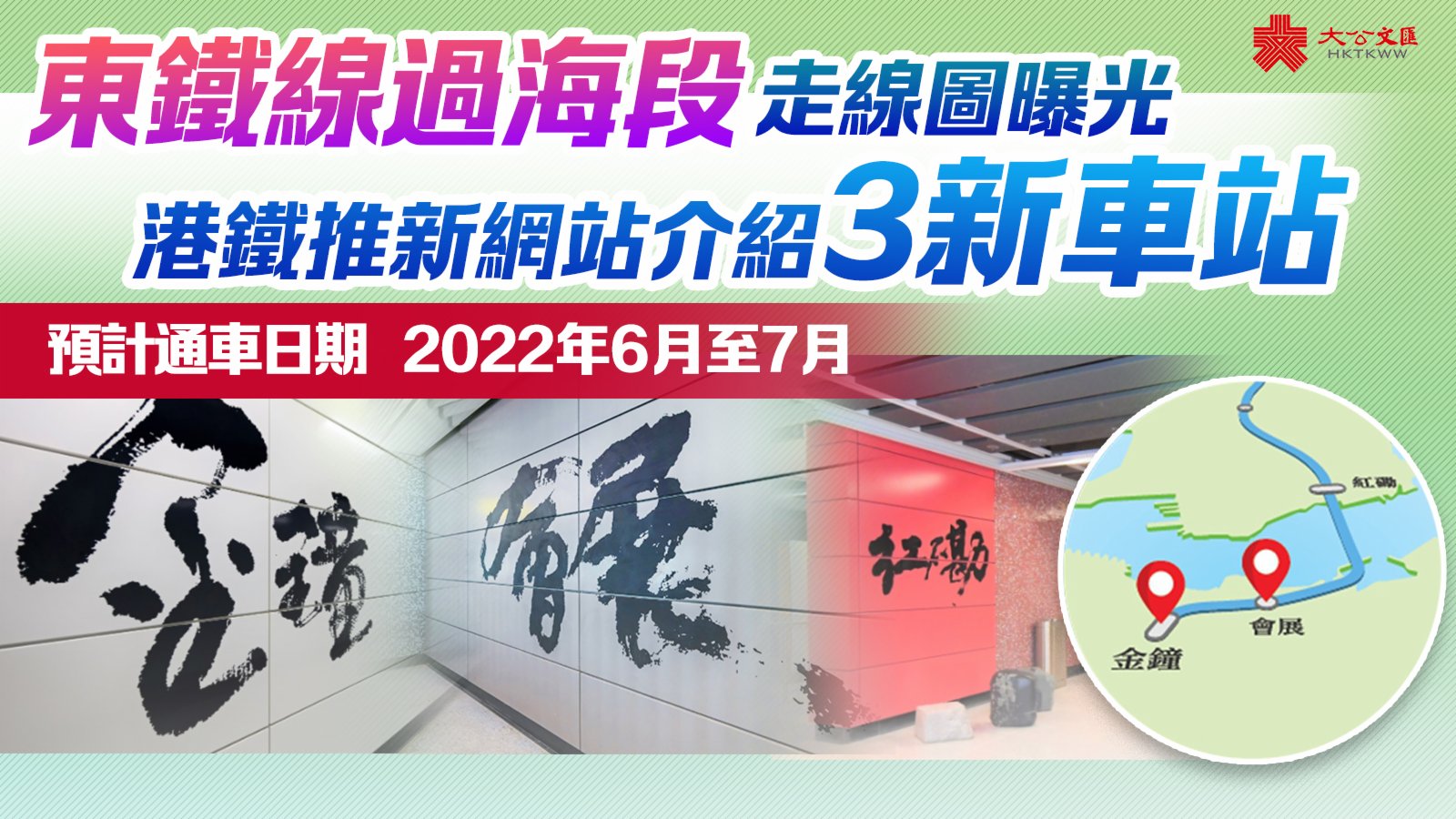 大公文匯全媒體報道,港鐵東鐵綫過海段預計明年6月至7月通車。東鐵綫過海段通車後,將由現時的紅磡站延伸至金鐘作新終點站,並途經新建於灣仔北的會展站,成為香港第4條過海鐵路。港鐵昨日(11月30日)推出東鐵綫過海段新網頁,公布最新的完整港鐵路線圖,並公開新車站的照片。