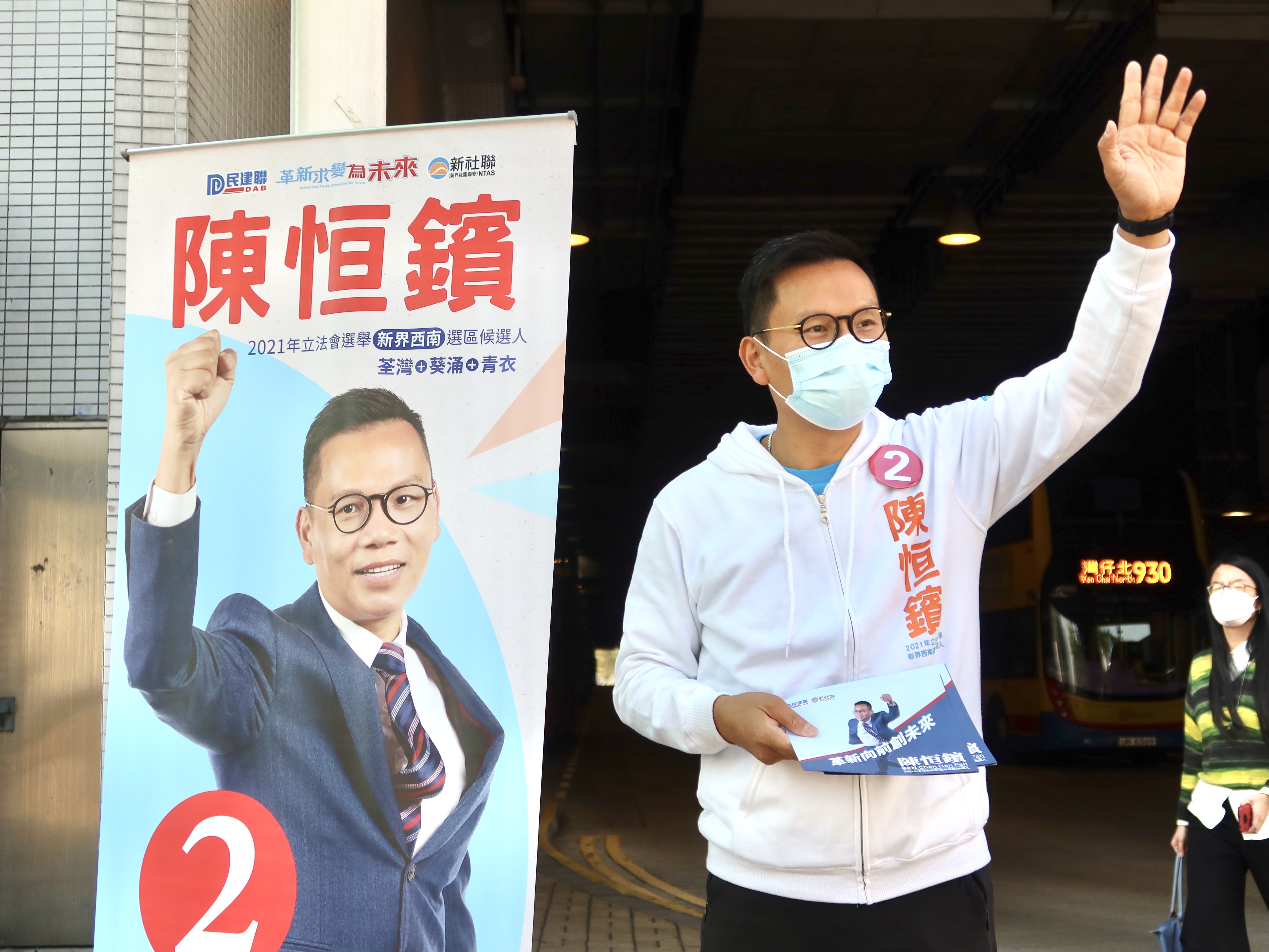 2021年立法會選舉地區直選新界西南候選人分別為:1號劉卓裕、2號陳恒鑌、3號陳穎欣。