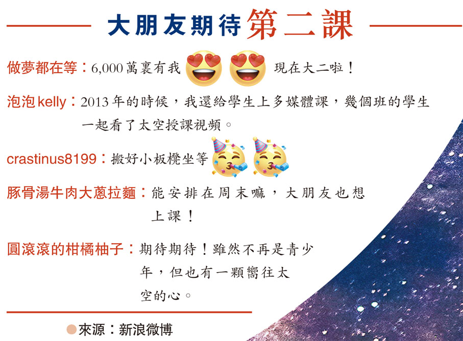 「在天宮課堂過去的8年中,我不只一次對當時的內容進行回溯。可以說,那48分鐘對當時年幼的我而言,影響遠不止短短一節課的時間。」