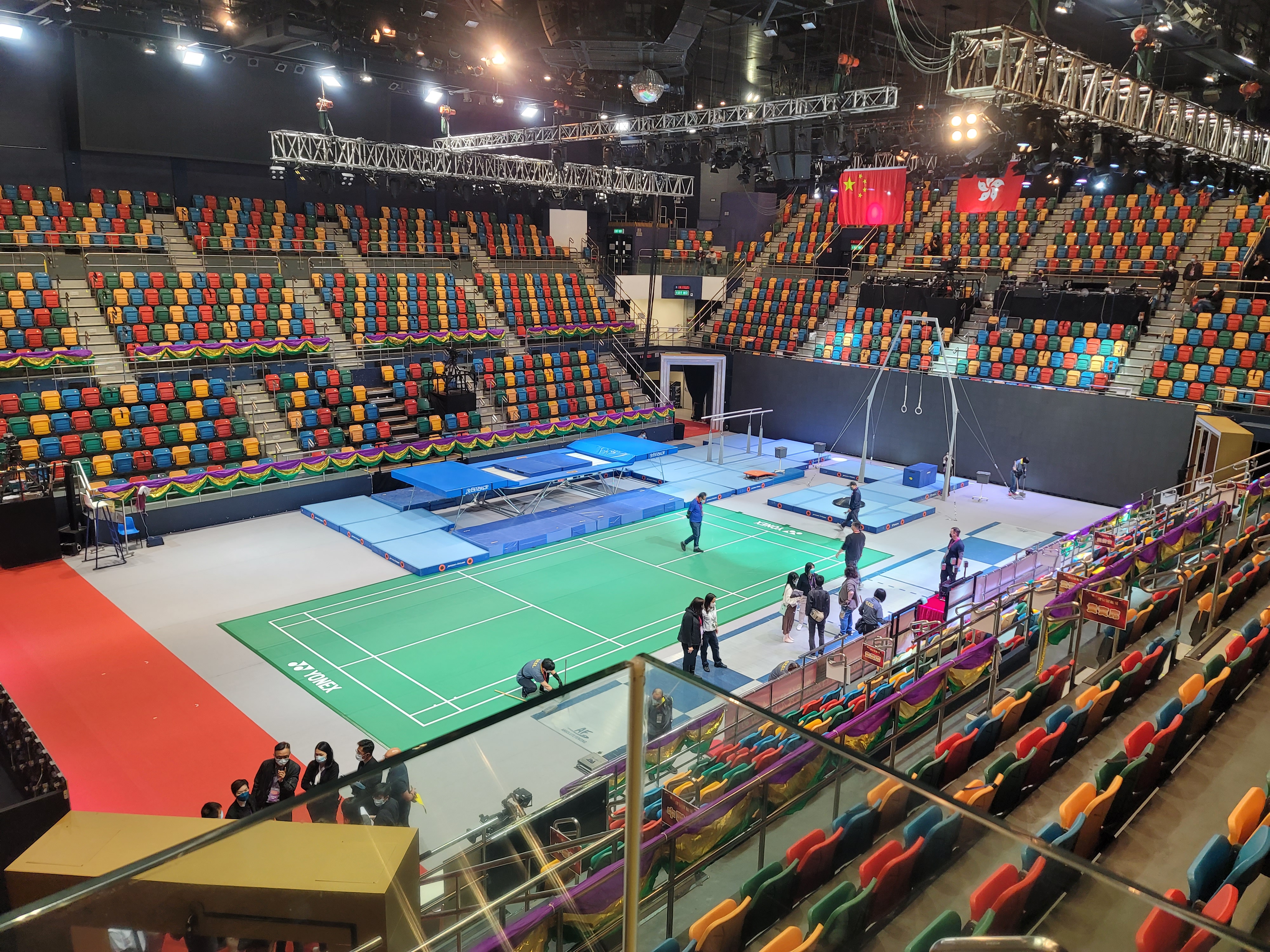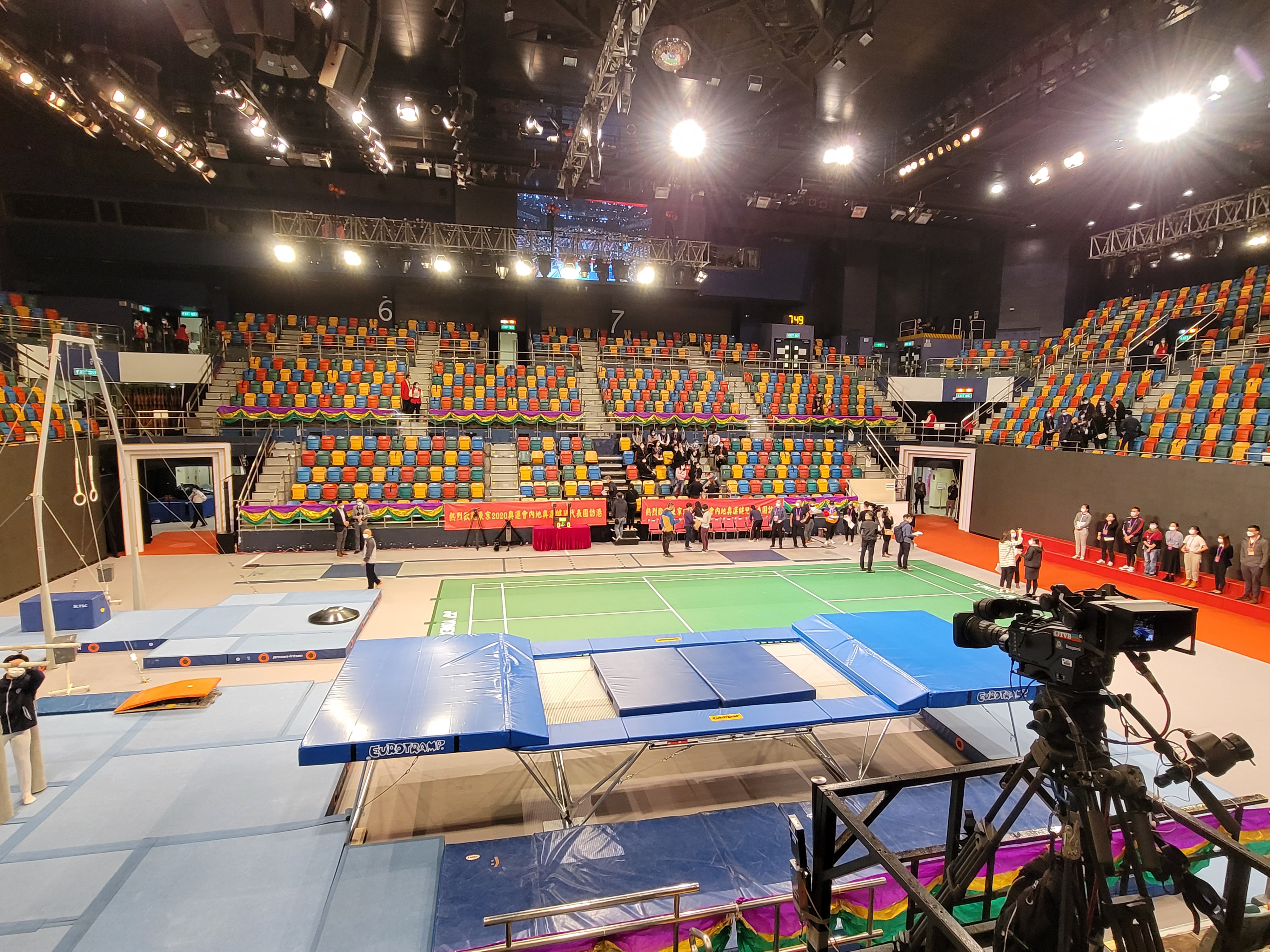 為給讀者帶來第一時間精彩報道,大公文匯全媒體記者一早抵達灣仔伊利沙伯體育館,成為第一個入場的媒體。現場已布置好羽毛球、劍擊及乒乓球等幾項運動的場地,工作人員有條不紊地做最後準備工作,精彩的國家隊體育示範即將於9時30分開始。