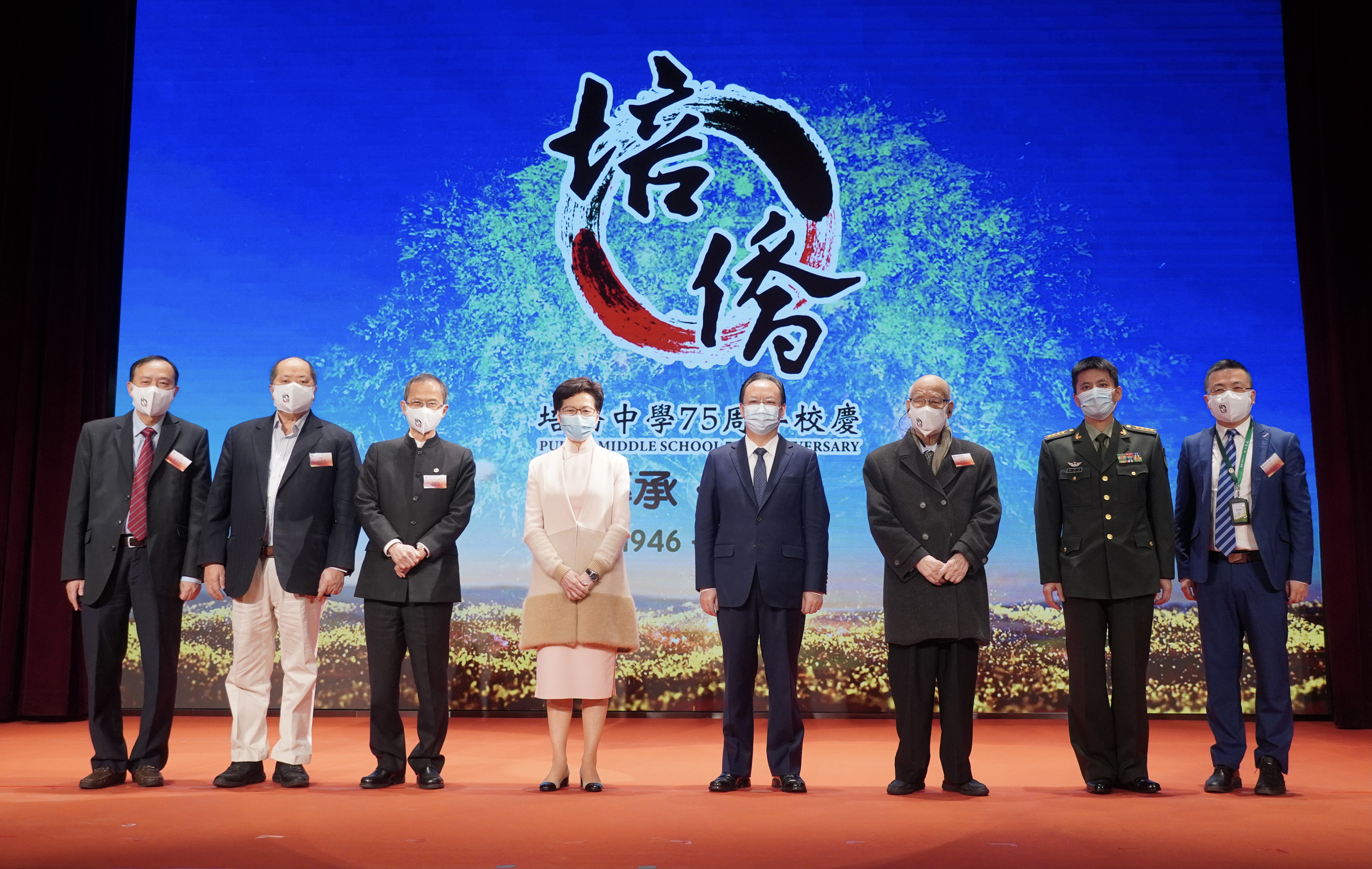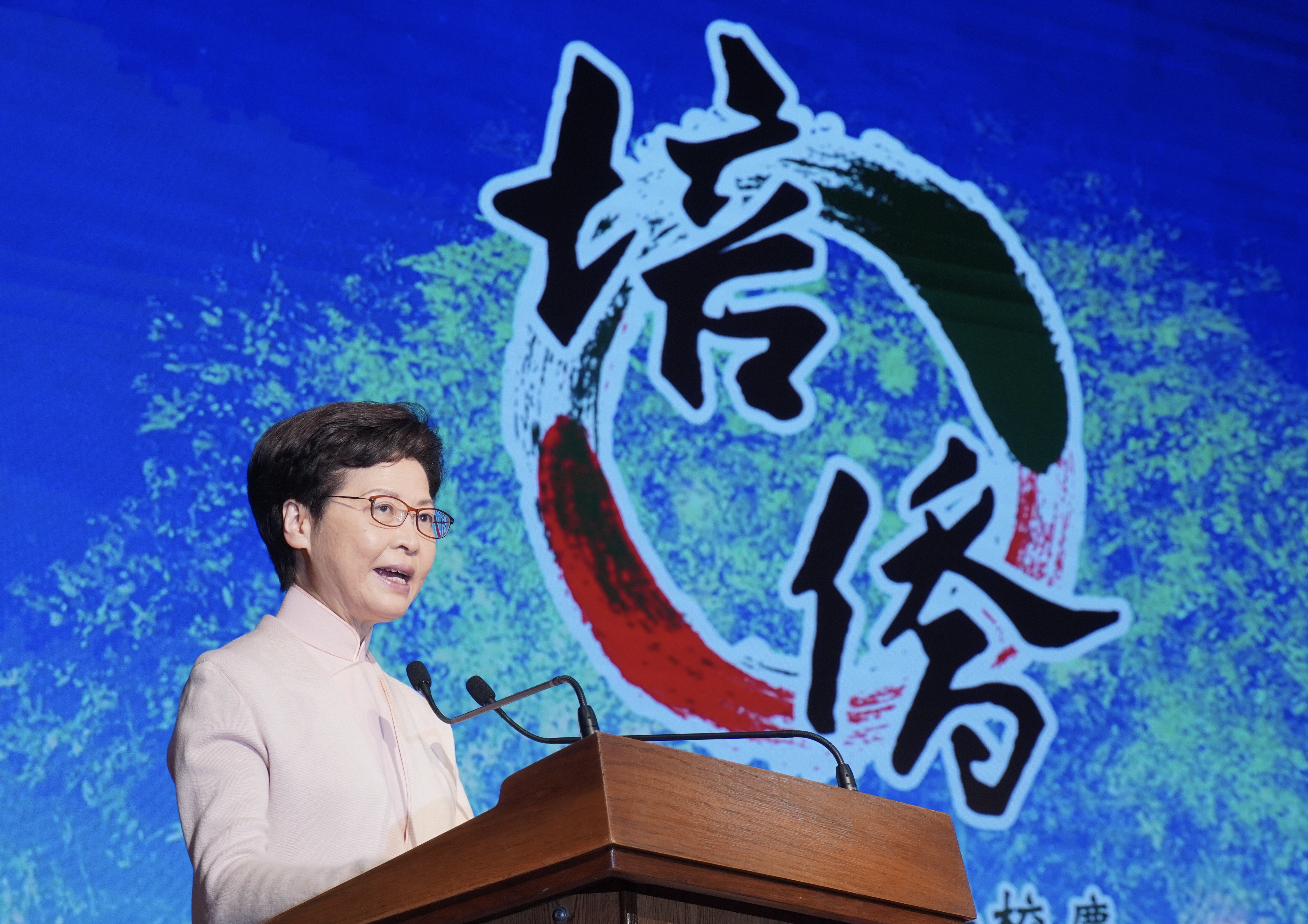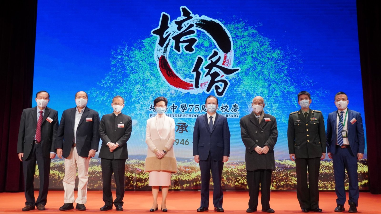 林鄭月娥致辭時表示,培僑中學在香港多年耕耘,碩果纍纍。70多年來,已由一所學校發展成為一個具規模的教育機構,現時在香港開設了一所中學、一所小學及一所「一條龍」中小學,培育英才,并將其辦學理念及高質教育拓展至大灣區內地城市,為包括在當地工作的港人子女在內的學童提供優質的教育。