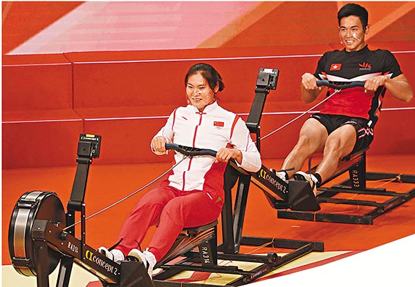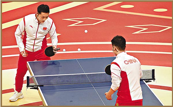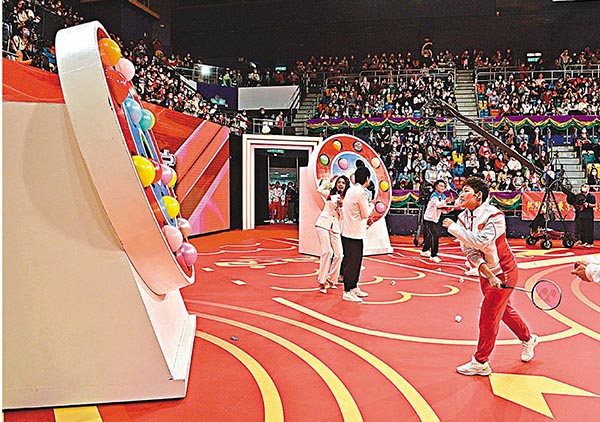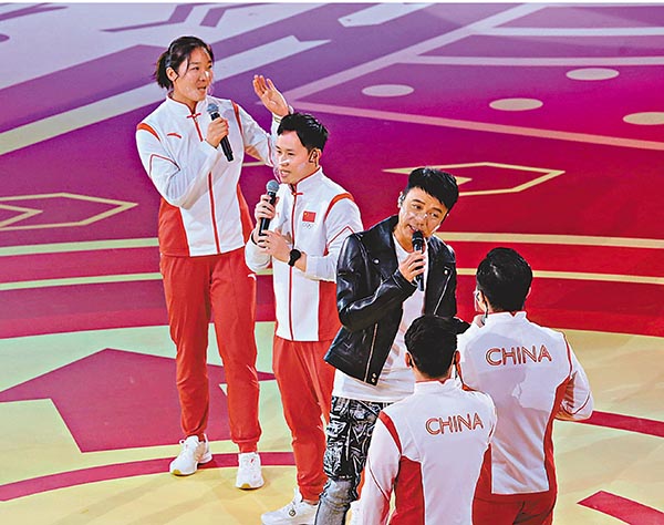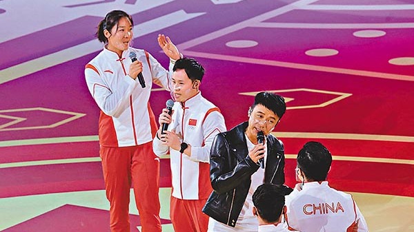 儀式過後,內地健兒分批登場參與示範、比試等不同項目。他們每次出場時,場內均播放他們的東奧作賽短片,讓觀眾「溫故知新」。打頭陣的是乒乓球代表馬龍和許昕表演乒乓球對搓,更一度出現同場3個乒乓球,他們亦顯得應付裕如。其間,馬龍使出「後手接球」娛樂大眾,最後更以一記成功扣殺作結。兩人雖只顯露少許技藝,卻已令現場觀眾如癡如醉。