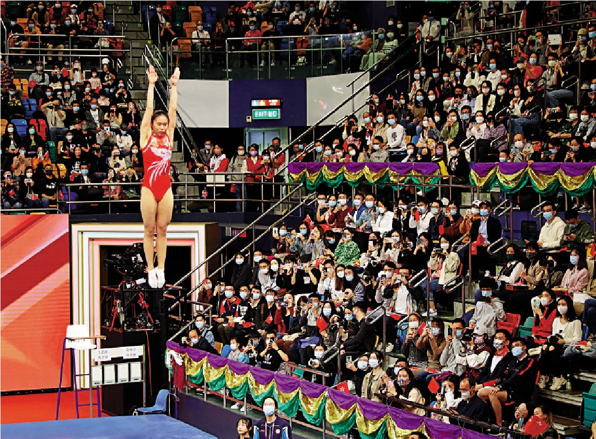活動開始,國家隊的運動員在儀仗隊的演奏儀式中隆重出場,王宗源、謝思埸、楊浚瑄、湯慕涵、徐詩曉、崔曉桐、張靈、陳雲霞、呂揚這九名運動員一出場便獲得現場觀眾齊齊揮舞手中的國旗和區旗熱烈歡迎,熱烈的氣氛瞬間被點讚。