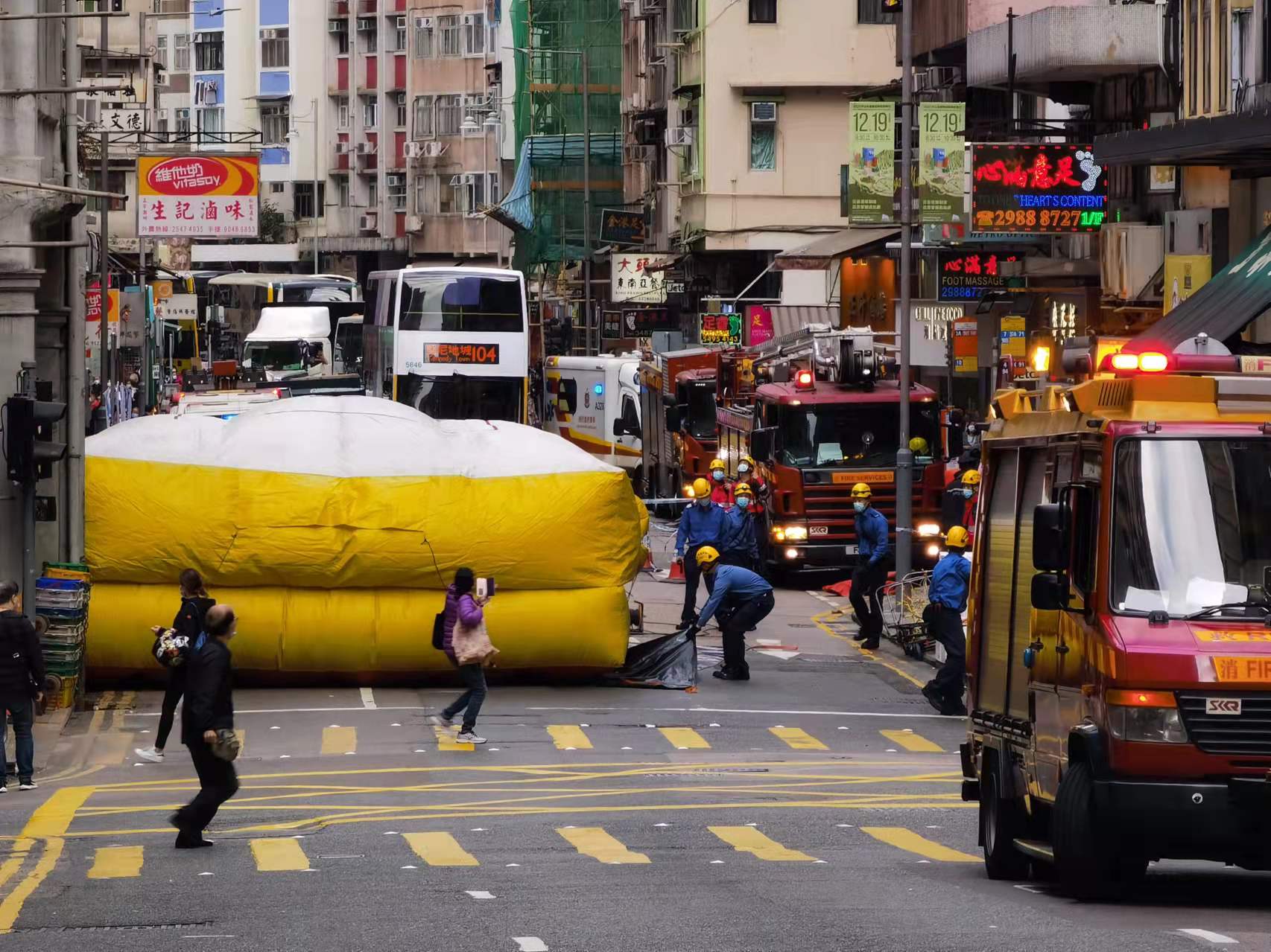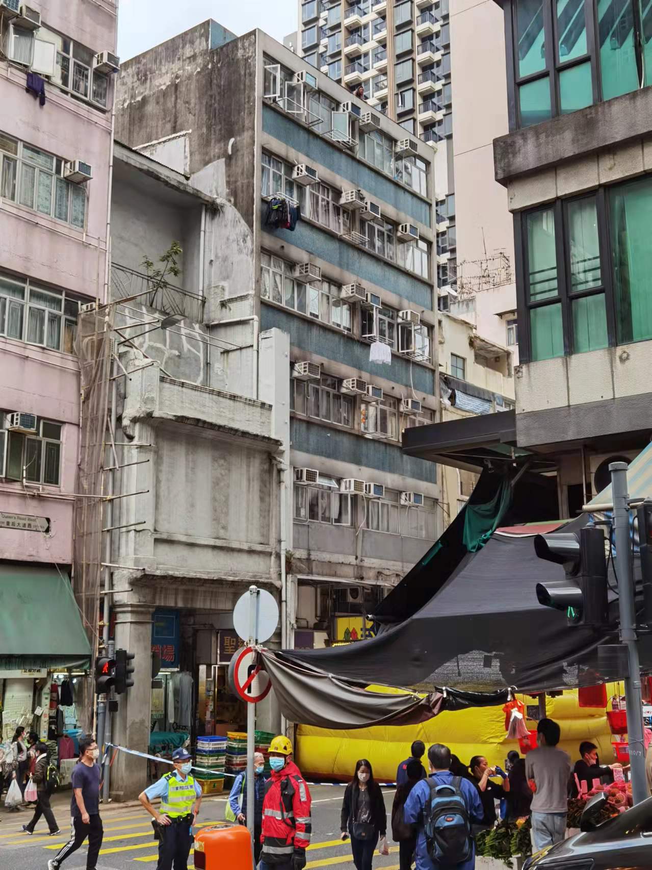 大公文匯全媒體報道,今日(7日)下午位於港島中西區皇后大道西296號一座舊樓天台懷疑有人企圖跳樓,消防員及警員封鎖現場道路並架設大型氣墊。