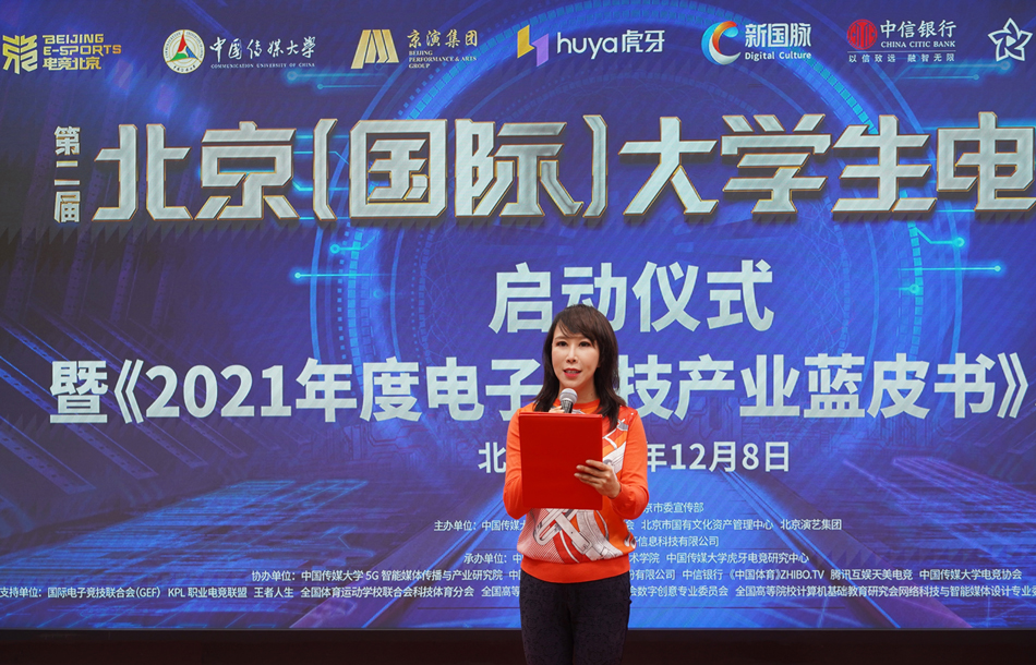 大公文匯網報道,12月8日,第二屆北京(國際)大學生電競節在《中國體育》賽事轉播製作基地正式拉開帷幕。啟動儀式上,中國傳媒大學副校長段鵬、廣州虎牙信息科技有限公司高級副總裁李萌致辭,並發布了《2021年度電子競技產業藍皮書》。