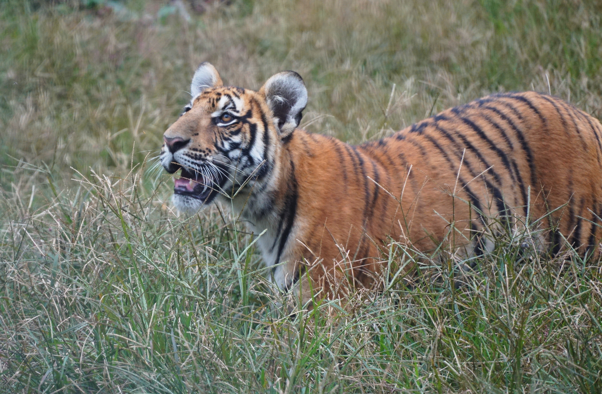 我們人工哺育的華南虎,一般1月齡開始,奶水中會添加肉沫,長大一點後「奶爸」會給我們提供野雞、野兔,供我們學習捕獵。到了6月齡進入亞成體才會斷奶,然後會有羊或者黃麂等體型大一點的動物供我們捕食,幫助恢復野性。2歲半我們就成年了,這時候會有更大型的動物,例如野豬之類的讓我們捕獵。