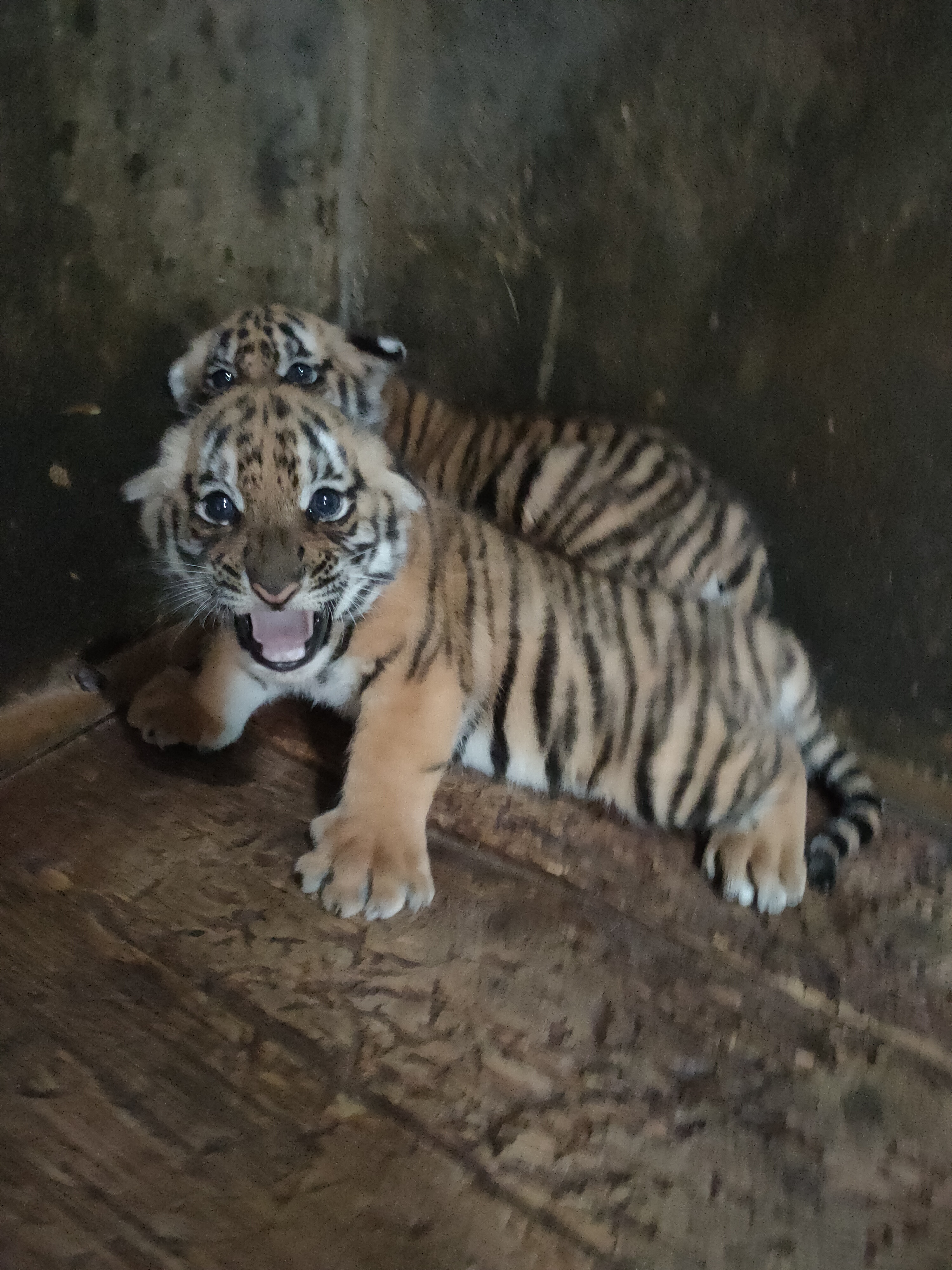 我也真的很爭氣,三兄妹中我是第一個長牙,走路也是走得最好的。在我3月齡的時候,「奶爸」為我抽血,血樣送到四川成都大熊貓中心。全世界的華南虎出生3月齡時都要抽血到那裏去做基因親子鑒定,以確認我們的血統純正。