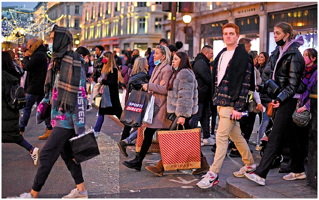 從10日起,英格蘭的劇院、電影院等大部分室內公共場所恢復實施口罩令;13日起,民眾應盡可能居家辦公;15日起,進入人員密集場所須出示疫苗接種證明。英國衞生大臣賈偉德表示,收緊限制措施很有必要,因為英國的Omicron病例「每隔2至3天翻一番」,月底前可能突破100萬。