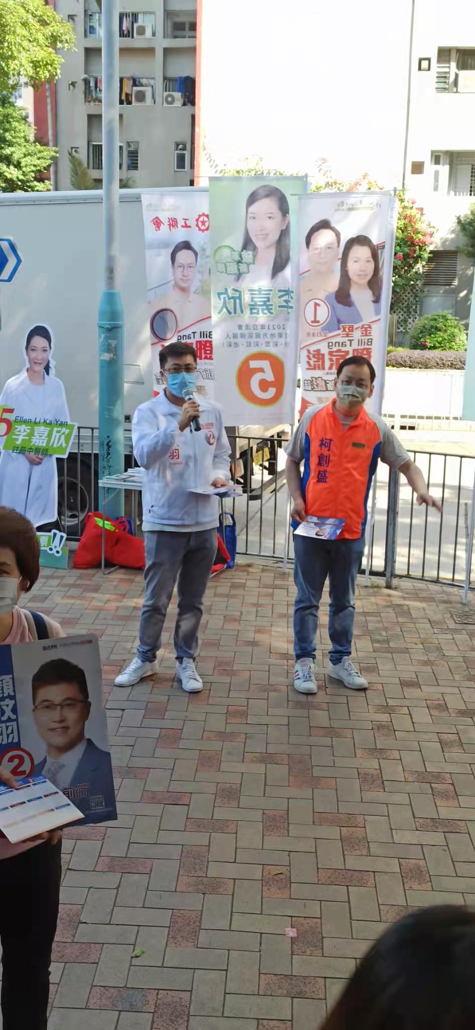 顏汶羽感謝義工及團隊協助,他說,完善選舉制度,讓香港獲得希望及曙光,他呼籲大家12月19日踴躍投票。