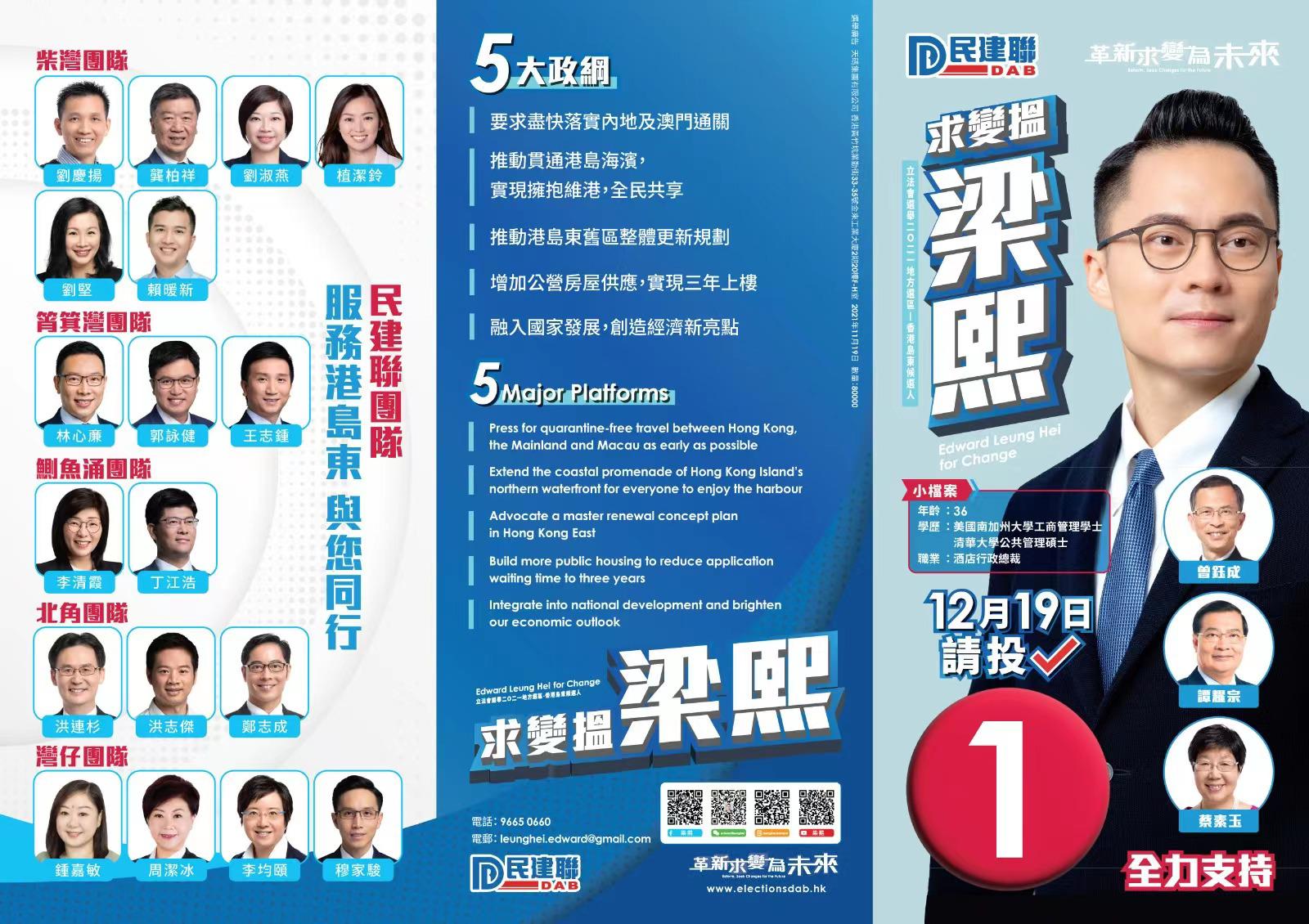 關鍵詞:立法會選舉地區直選港島東梁熙廖添誠吳秋北潘焯鴻