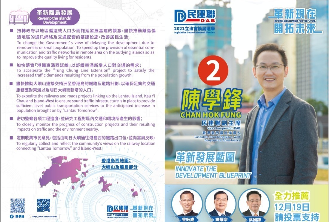 關鍵詞:立法會選舉地區直選港島西葉劉淑儀陳學鋒方龍飛