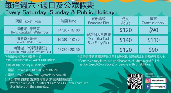 天星海港遊指,臨近聖誕新年,天星海港遊更特別於12月24日及31日(星期五)加開班次,每天3班提供上述觀光航線服務。