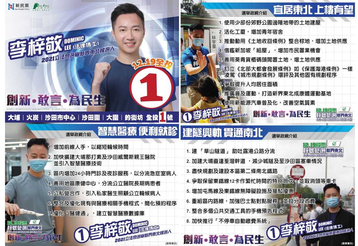 關鍵詞:立法會選舉政綱大比拚新界東北李梓敬黃成智陳克勤黃頴灝