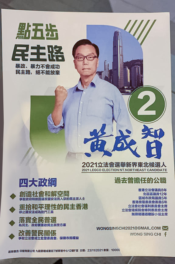 新界東北地區直選共有4名候選人,分別是:1號李梓敬、2號黃成智、3號陳克勤、4號黃頴灝。