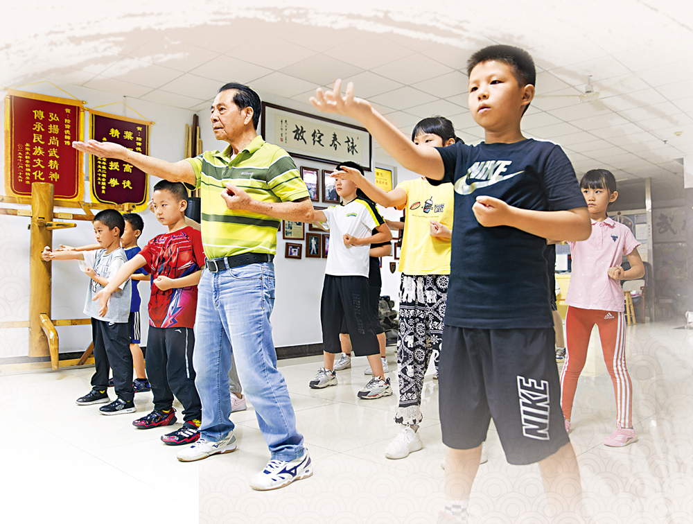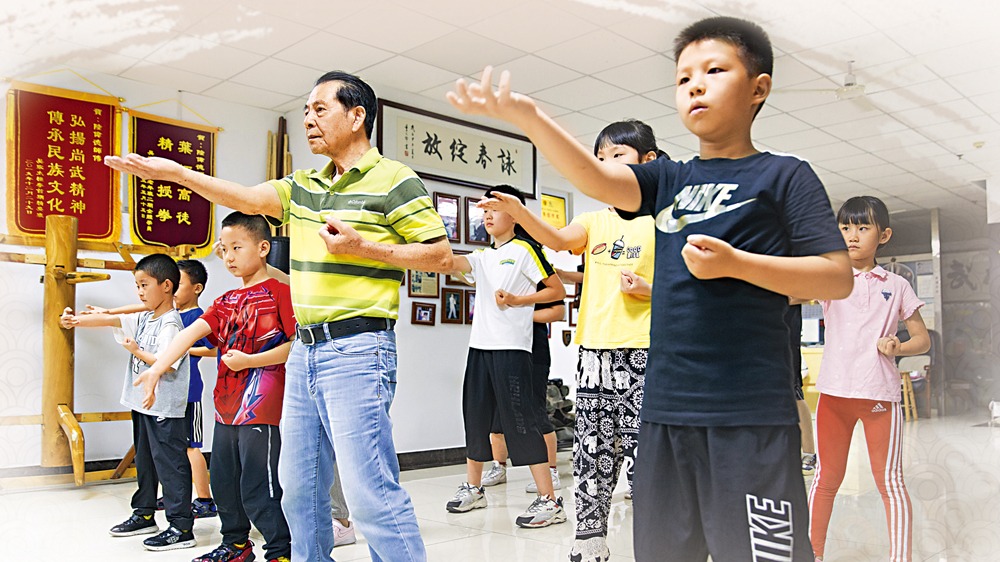 【大公報記者 丁春麗、胡卧龍(文、圖)】沉肘,寸掌,攤手、圈手、衝拳……陸偉德一步步地教授學生詠春拳的各個招式。陸偉德是香港人,也是葉問詠春拳的第三代傳人。2010年,他因為來自山東的妻子不能適應香港生活,便隨其北上定居濟南。7年前,陸偉德在當地開了一家武館,教授詠春拳,現已收徒數百人,頗有名氣。