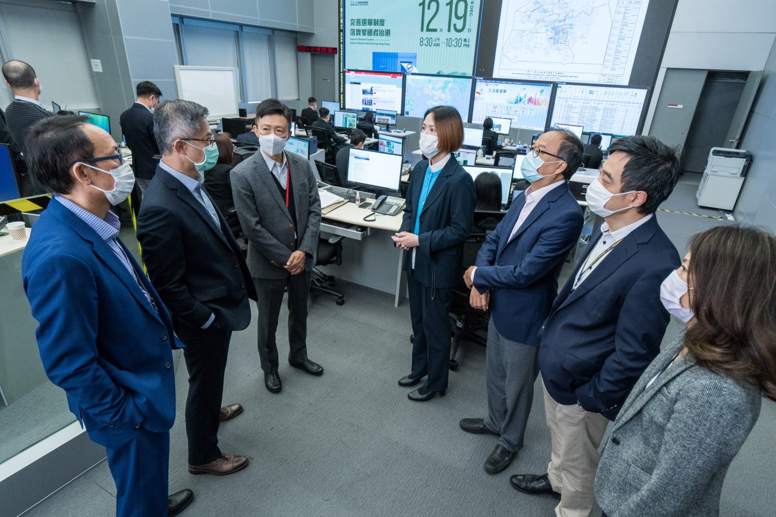 廉政專員白韞六今早巡視了廉署大樓的執行處應對指揮中心,以及廉署24小時舉報中心。應對指揮中心人員全日協調廉署各部門的部署並與各政府機構保持緊密溝通,以防範及打擊有違《選舉(舞弊及非法行為)條例》(《條例》)的不法行爲。
