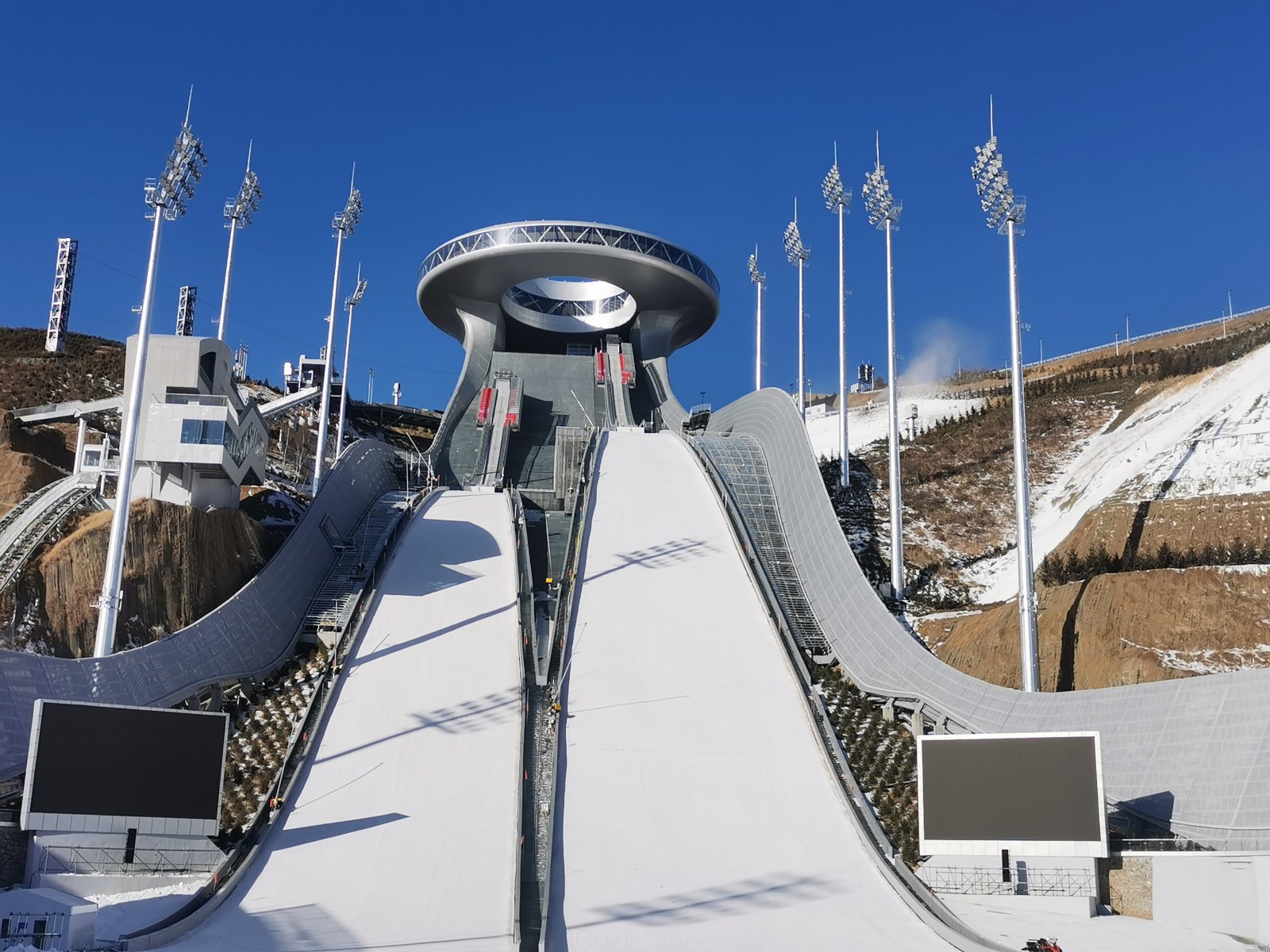 因為跳台剖面與中國傳統吉祥飾物「如意」的S 形曲線契合,國家跳台滑雪中心被形象地稱為「雪如意」,是北京冬奧會標誌性的場館之一。清華大學設計團隊相關負責人王灝指出,不同於國外的跳台滑雪賽道大多建在土石方等填充物上,「雪如意」另闢蹊徑將168米長的大跳台賽道架在空中,「柄身」正好是賽道,運動員從賽道上疾馳而下,並在「雪如意」底部足球場內的結束區完成動作。