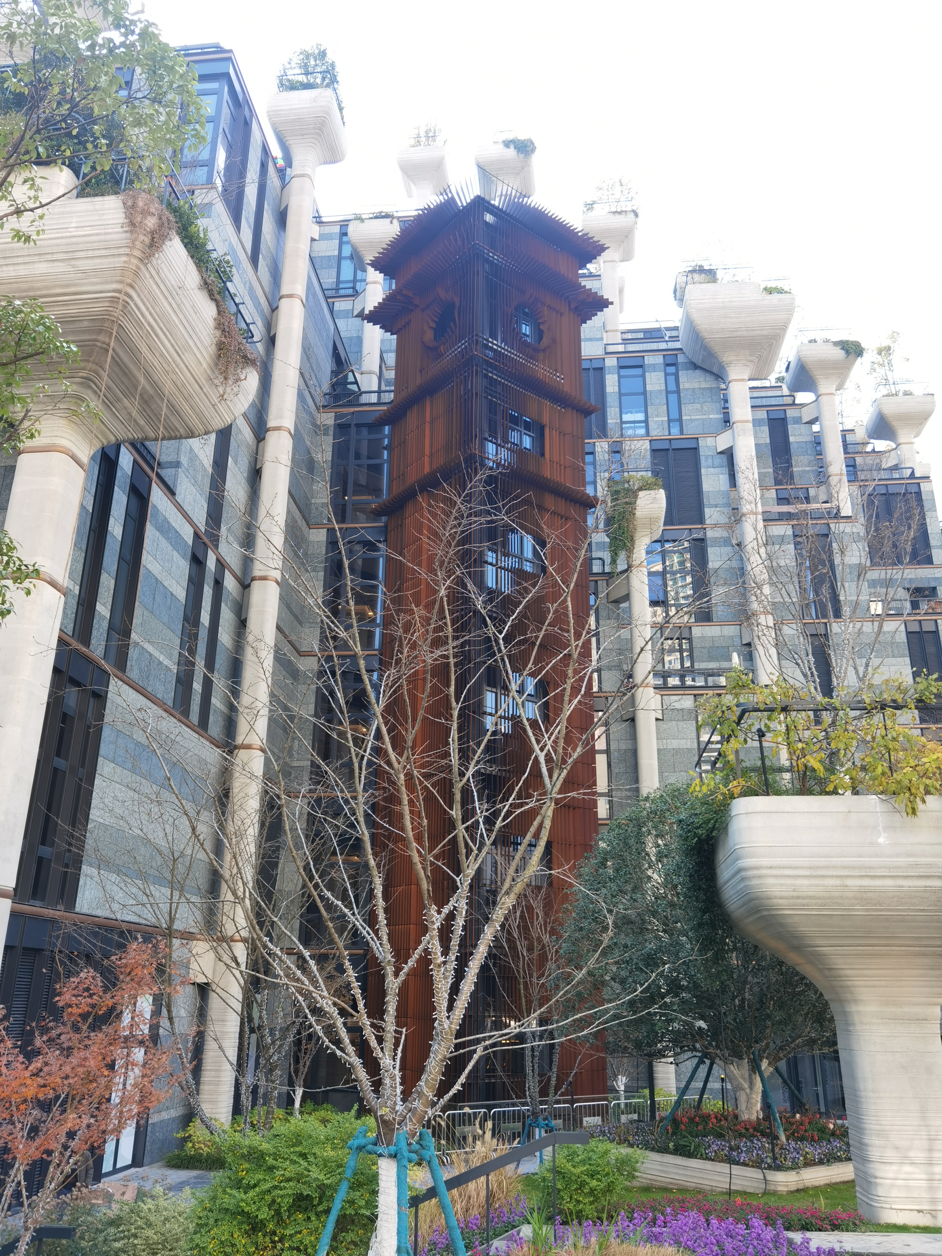 「天安千樹」從設計到開幕,前後歷經八年。整個建築由英國建築鬼才設計師、上海世博會英國館設計者Thomas Heatherwick設計,他在創作中借鑒了中國黃山的山脈意象和古巴比倫空中花園的聯想,也為項目博得了「懸浮森林」、「魔都古巴比倫」等稱號。