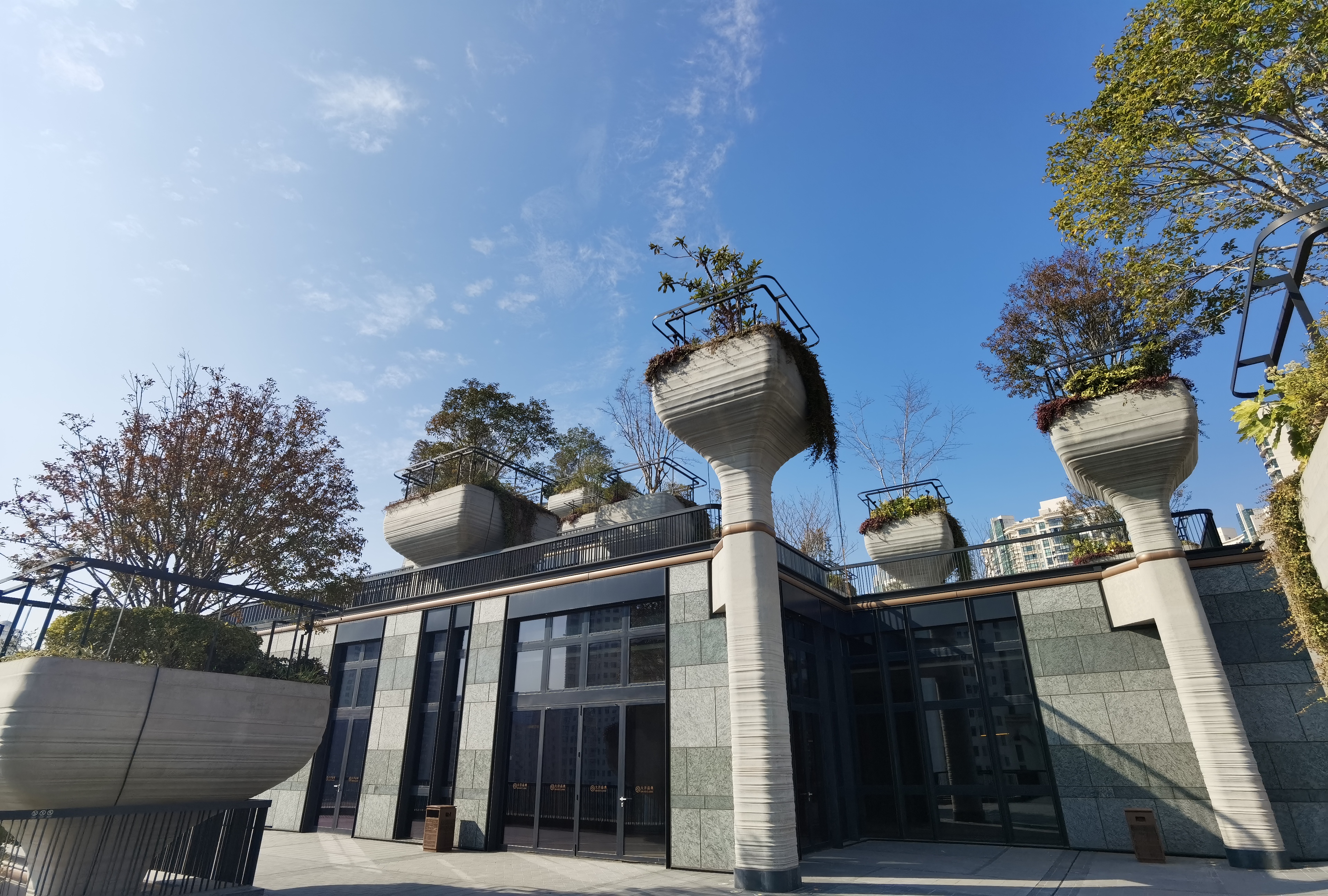 事實上,疫情之前,「千樹」初具雛形之時,就在網上走紅,成為海內外攝影界、建築界、網紅潮人爭相打卡的聖地。所謂的「千樹」,確有千樹。在採訪現場,承擔項目招商工作的香港青聯委員、上海大洋千樹商業管理有限公司招商市場總經理黃敬升告訴記者,從遠處能看到的「空中花園」,是由400級台階、1000根結構柱形成山峰樹狀露台,上面種植了1000多棵綠植。沿蘇州河一側,可見上百個露台,數百根清水混凝土生命立柱和高低錯落的樹木。加之在蘇州河沿岸特別打造的河濱步道,遠觀可形成山水相融的遼闊視覺感受。