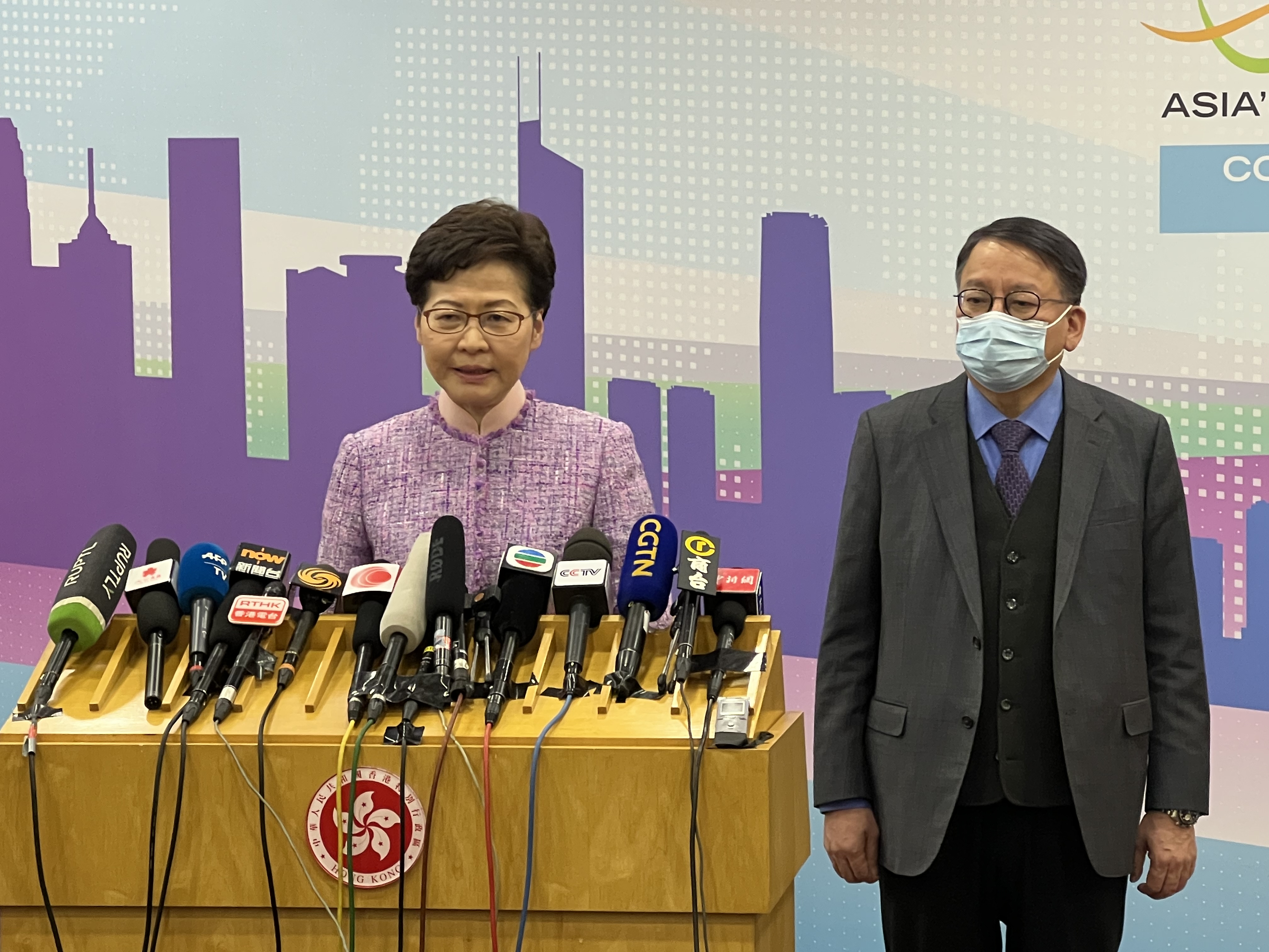 林鄭月娥表示,2020年述職因疫情無法前行,而要在今年初以視頻方式述職,今次終於可以親自到北京述職。她說,2021年對於香港來說是非常重要的一年,對貫徹落實「一國兩制」亦是非常重要的一年,因落實國安法和完善選舉制度,並完成兩場選舉。