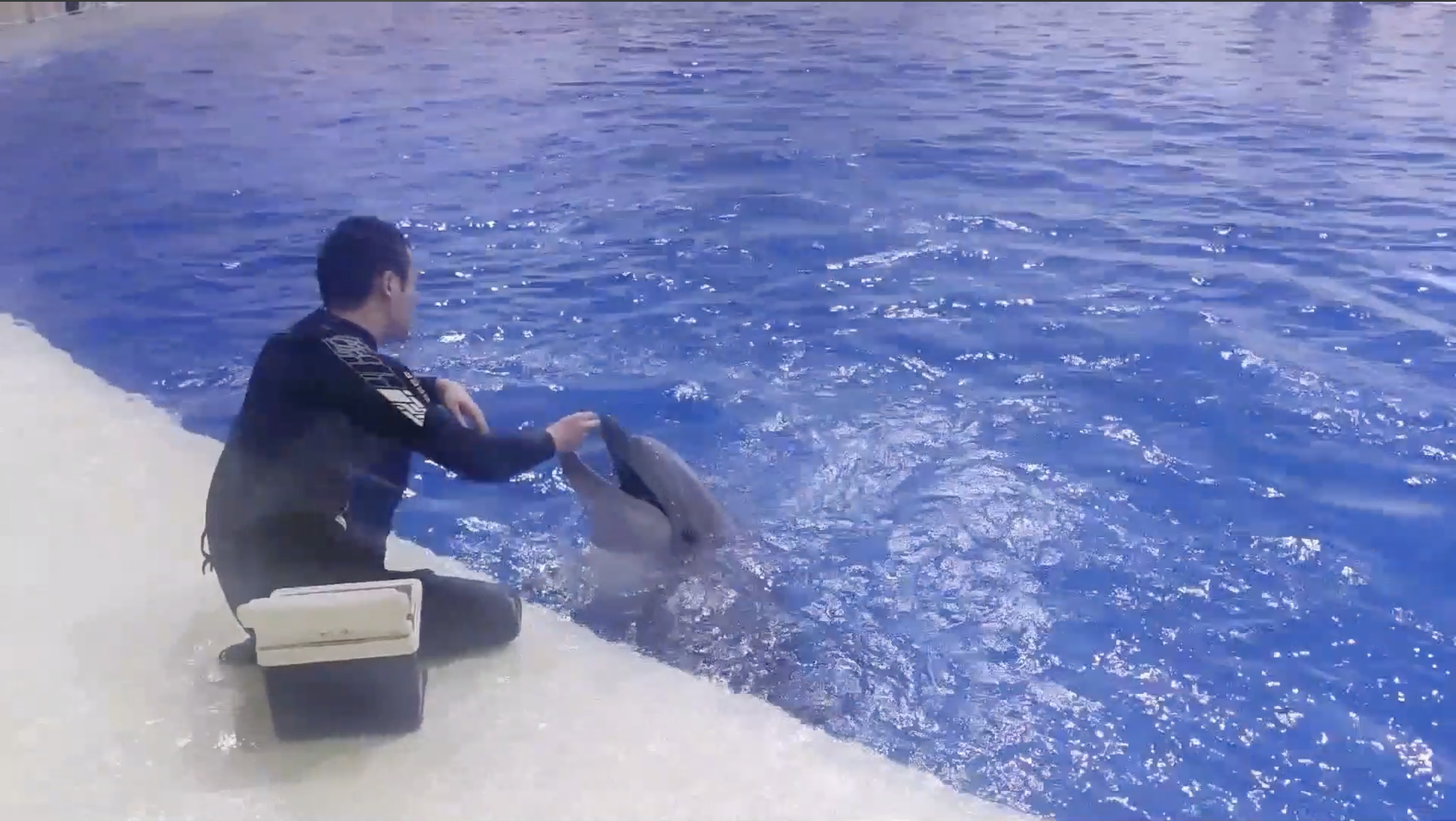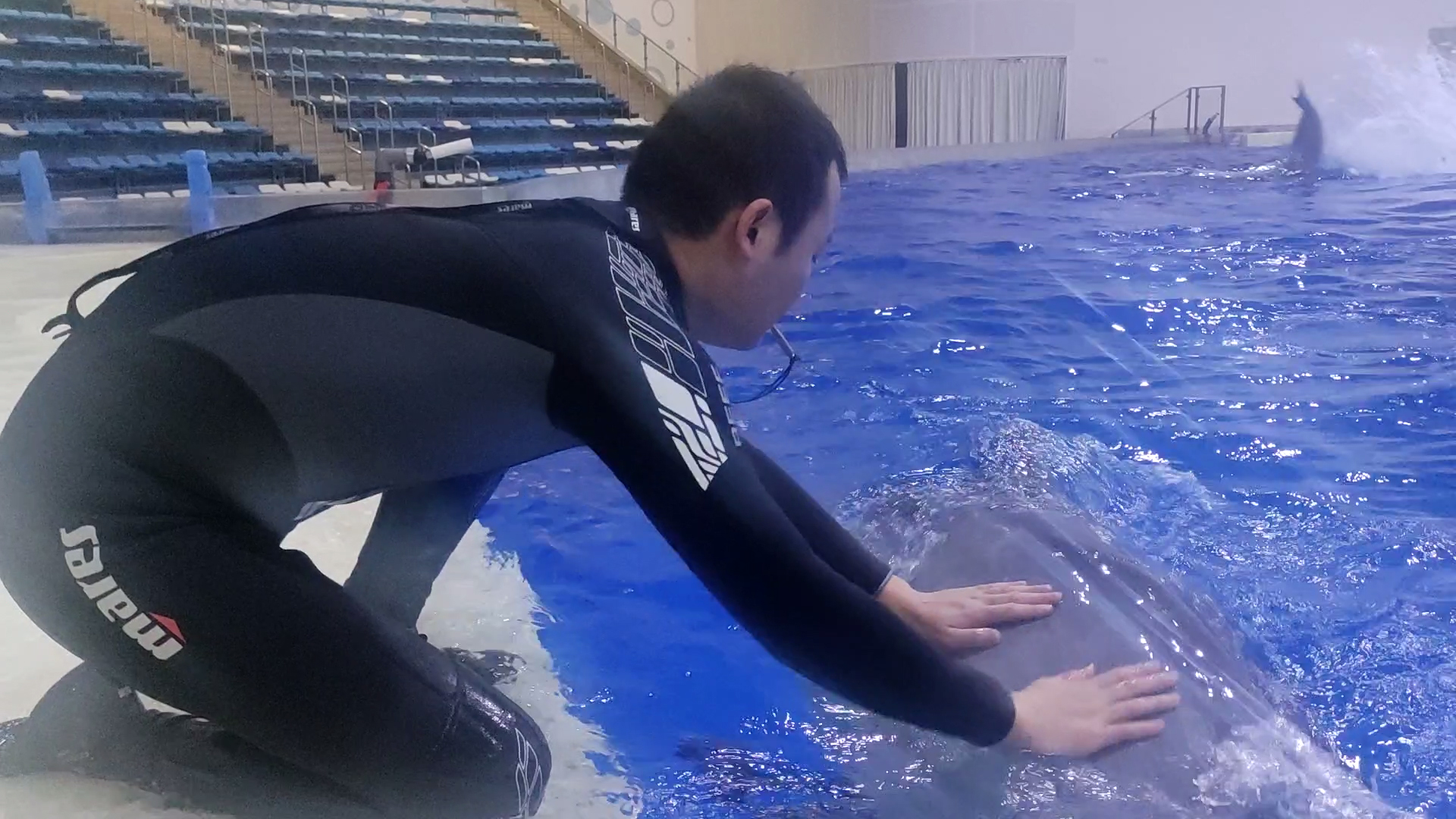 吳非凡告訴記者,除了日常的照顧,保育員還需懂得動物心理學,了解海豚們的心理活動。因為一次偶然的機會,吳非凡接觸並喜愛上這個行業,「和動物們相處感覺特別開心」,如今他已經從事海豚保育員6年。館內,記者見到了吳非凡照料的海豚「芭比」,這位可愛的「海洋精靈」在牠的「人類大朋友」面前,不斷地用行動表示對保育員的喜愛,不僅跟着吳非凡「討要」小零食,開心的時候更會發出愉悅的叫聲,吳非凡說,海豚「芭比」最享受給牠搓澡,「從身體到尾巴,都要搓得乾乾淨淨。」