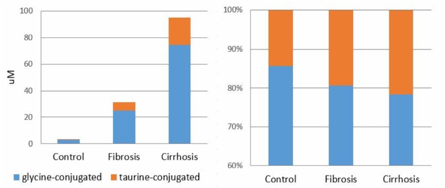 在次級膽汁酸中,次級結合型膽汁酸也被發現與慢性肝病密切相關。