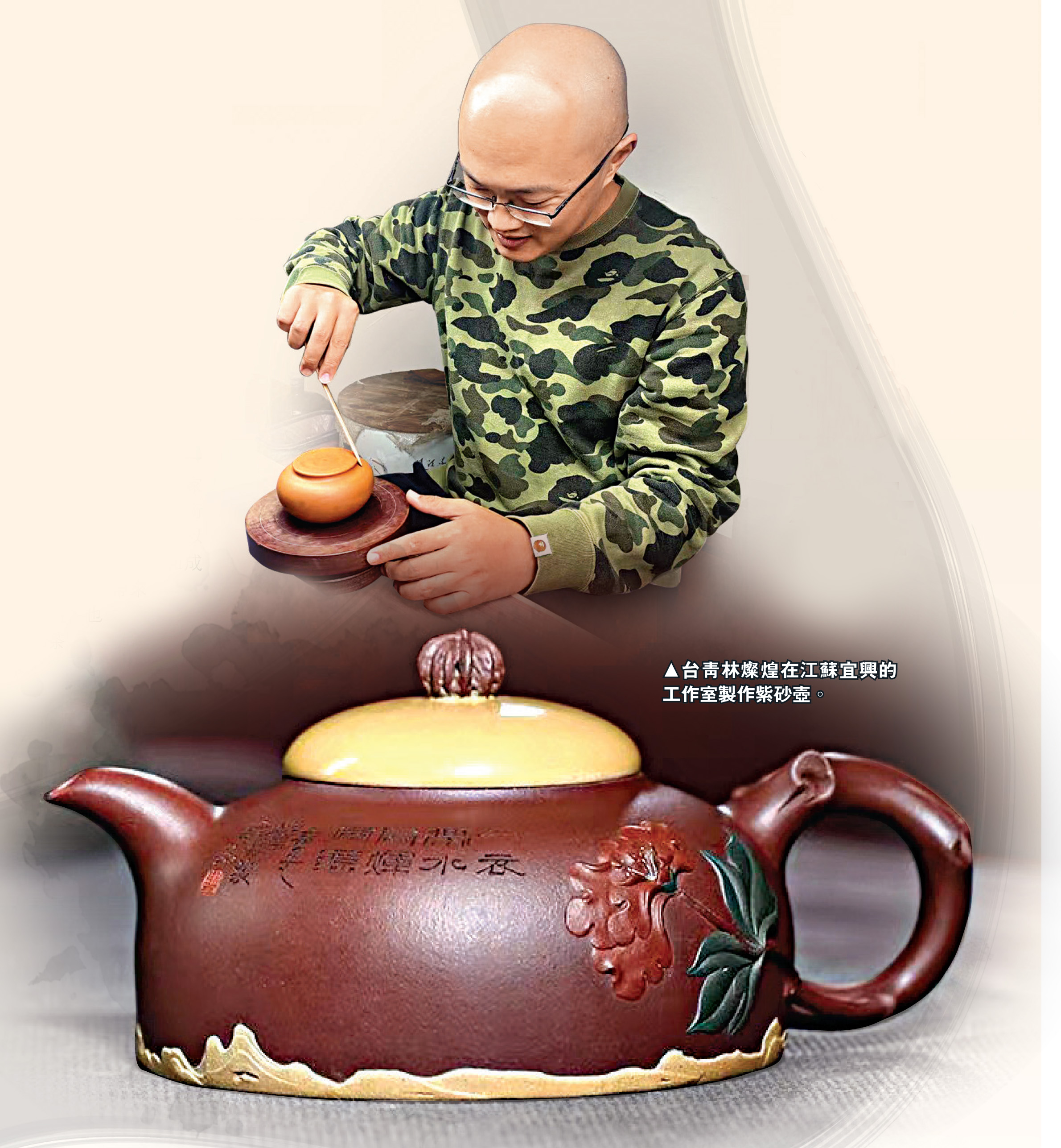 (大公報記者 賀鵬飛)「80後」台青林燦煌痴迷紫砂壺文化,13年前慕名來到江蘇「陶都」宜興,師從工藝美術大師季益順,學習製作紫砂壺。大陸向台胞開放專業職稱評審後,林燦煌順利通過考試並獲評國家級助理工藝美術師,成為台灣獲得紫砂壺製作職稱的第一人。林燦煌說,「我覺得我運氣還不錯,剛來宜興時就加入季大師的大家庭,大家都像家人一樣,給我很多溫暖。」