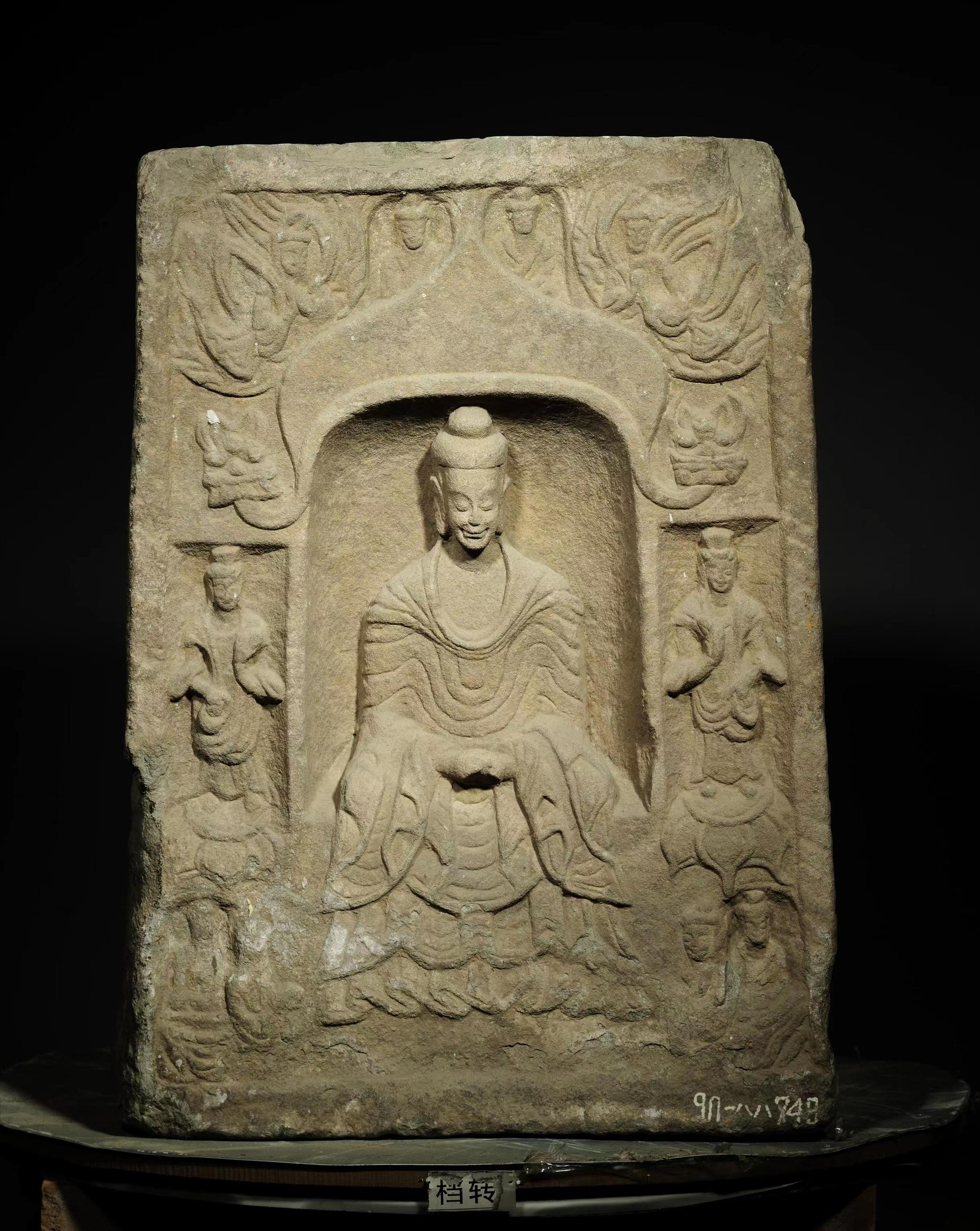 山西博物院同時參展的文物「北朝四面佛龕石造像塔」,下寬40厘米、上寬33厘米、高45厘米。北朝佛教發展迅速,在不斷本土化與民族化的過程中,北朝佛像從早期多為高鼻深目、薄衣貼體的異族模樣,到中後期逐漸漢化,呈現出秀骨清像、褒衣博帶的「名士」形象。