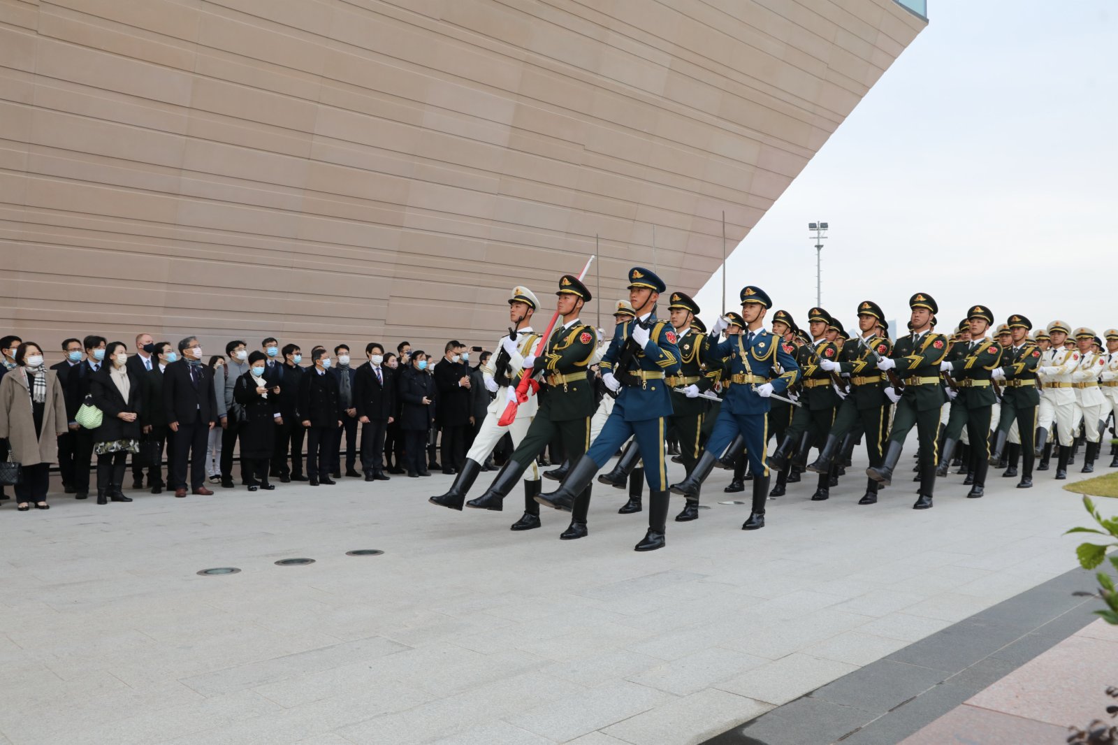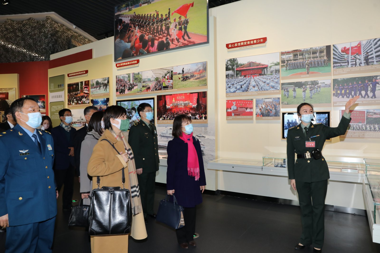 今日參訪期間,教育局官員和香港中小學校長觀看了升國旗儀式,隨後在駐港部隊軍官的導賞中,參觀以「夢起東方」為主題的大型展覽,走入「中國夢」、「強軍夢」、「香江衛士」3個主題展廳及裝備模型展示廳,深入了解國家發展歷程,香港與祖國血脈相連的情誼。