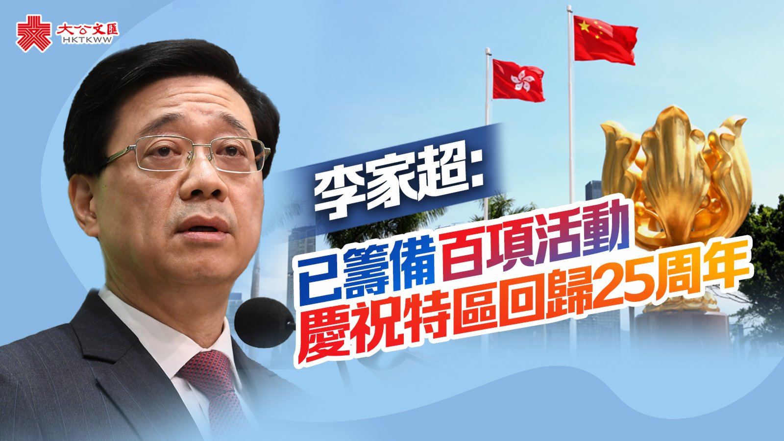 李家超表示,慶祝25周年活動的主題,是「砥礪奮進廿五載,攜手再上新征程」,強調在國家全面支持下,本港成功落實「一國兩制」,同時保持國際大都會的角色。李家超說,香港雖然經歷風浪,但隨着香港國安法實施,以及完善選舉制度,落實愛國者治港原則,香港已由亂轉治,踏入由治及興,由破壞年代進入建設年代的全新發展局面,只要各界攜手一致,把握新發展機遇,一定能為香港創造更美好的未來。