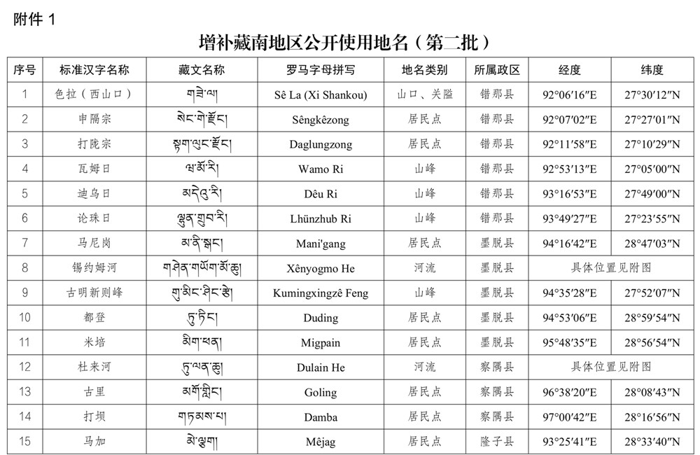 關鍵詞:民政部第二批藏南地區地名